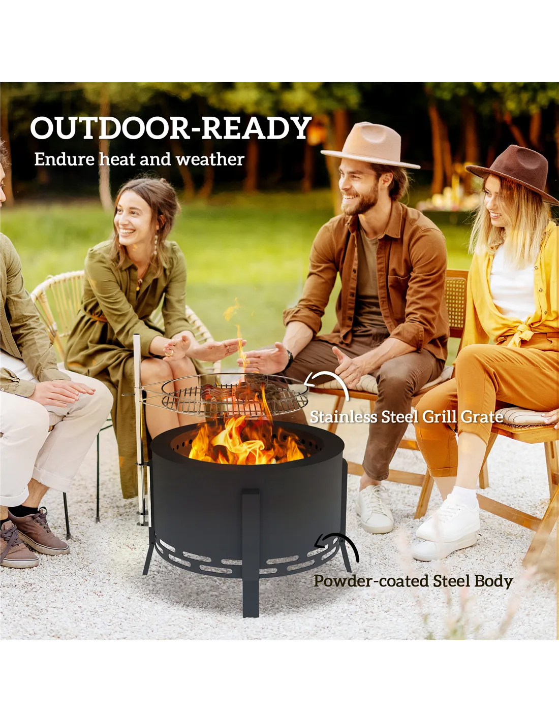 The fire bowl is constructed from durable steel with a stainless steel grill grate, ensuring resistance to rust and heat for long-lasting use. - Can this fire pit be used for cooking?