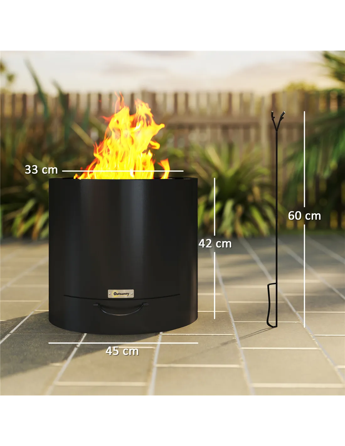 The Outsunny wood-burning fire pit is perfect for creating a warm and inviting atmosphere in your garden or patio. Ideal for cosy evenings with family and friends, it also serves as a charming focal point during outdoor gatherings or barbecues. Thanks to its portable design and durable steel construction, it’s equally suited for camping trips or countryside retreats. Use the included poker to safely manage your firewood, while the pull-out ash tray ensures effortless cleaning after use. Whether enhancing your backyard or adding a rustic touch to your outdoor adventures, this fire pit combines practicality with style.