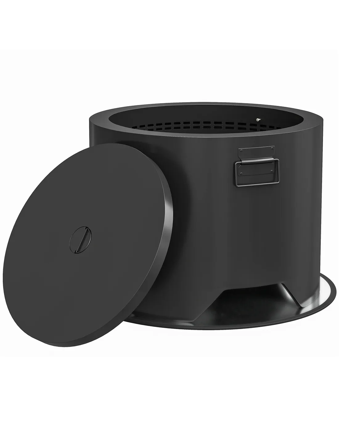 Outsunny Outdoor Round Fire Pit with Lid and Fire Poker - Black