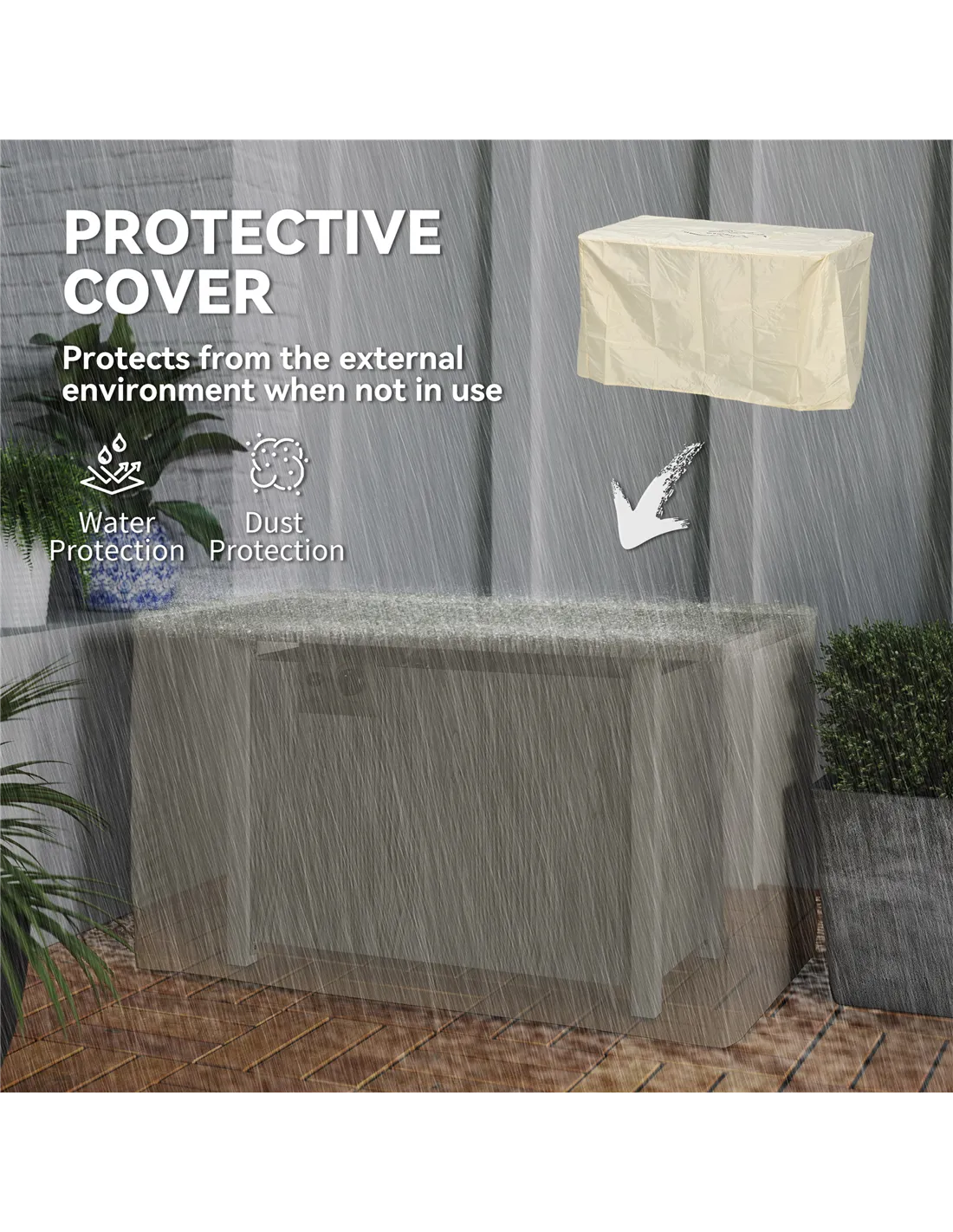 - Waterproof rain cover for when it's not in use
