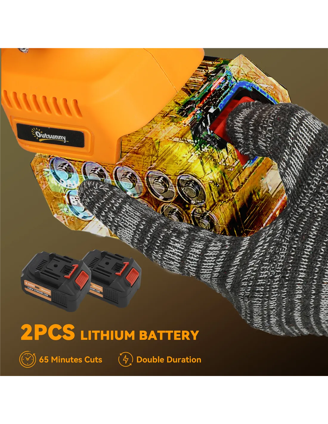 Upgrade your outdoor trimming with the Outsunny cordless garden saw! Powered by a long-lasting brushless motor and twin 4Ah batteries, it delivers extended run-time and consistent performance. The 5.8 m/s chain speed ensures quick, clean woodwork - great for various garden tasks. Enjoy reliable, smooth operation with minimal effort.