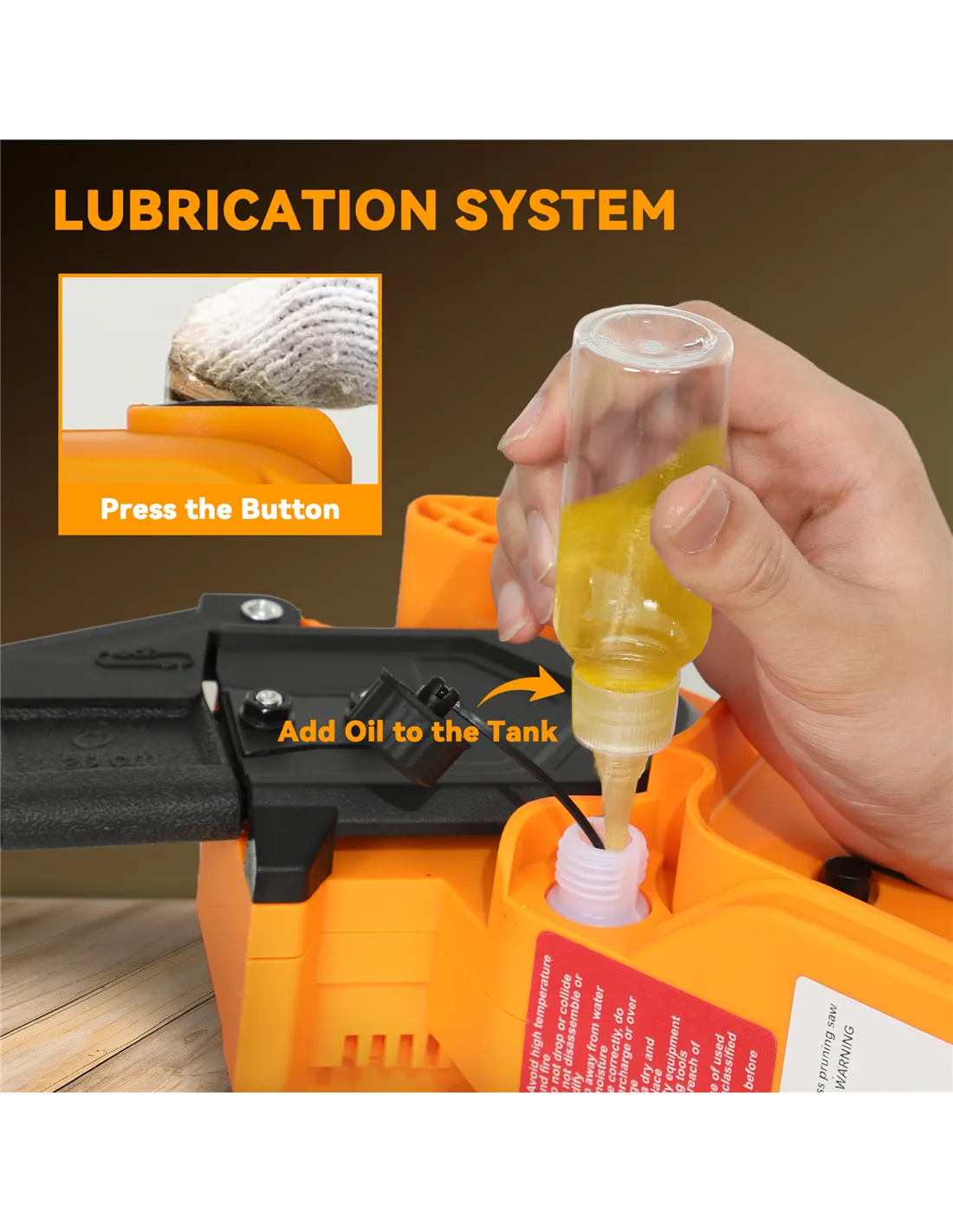 - Semi-automatic oiling system keeps the chain running smoothly