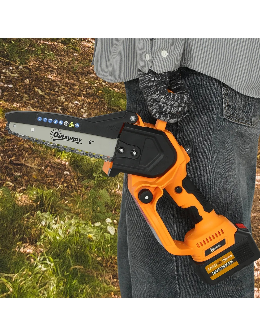 The Outsunny cordless mini chainsaw is ideal for a variety of outdoor tasks around your home and garden. Perfect for pruning branches, trimming hedges, and cutting firewood, this compact electric saw offers precision and ease of use. Its lightweight design and brushless motor make it suitable for both casual gardeners and DIY enthusiasts. Whether you need to maintain your garden trees or prepare wood for a cosy fire, this tool delivers reliable performance with minimal noise and vibration. The included safety lock and double-lock system ensure secure handling, making it a practical choice for safe, efficient wood cutting and garden maintenance.