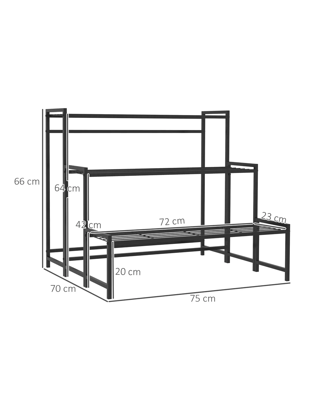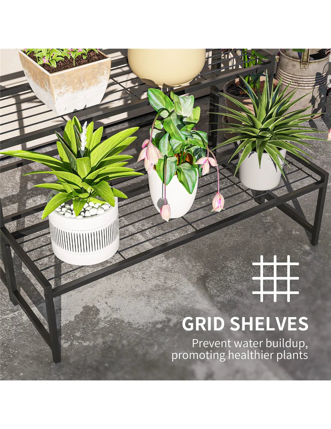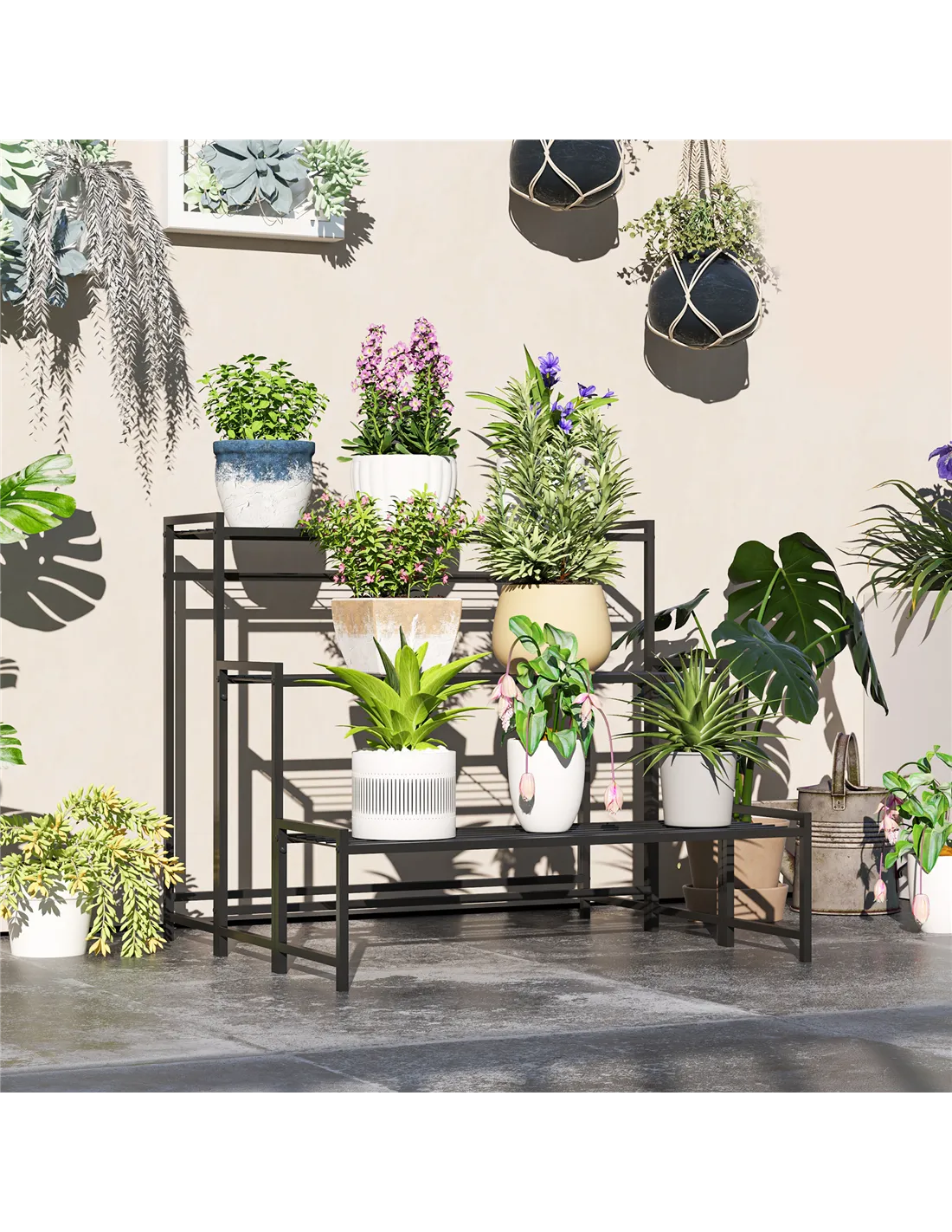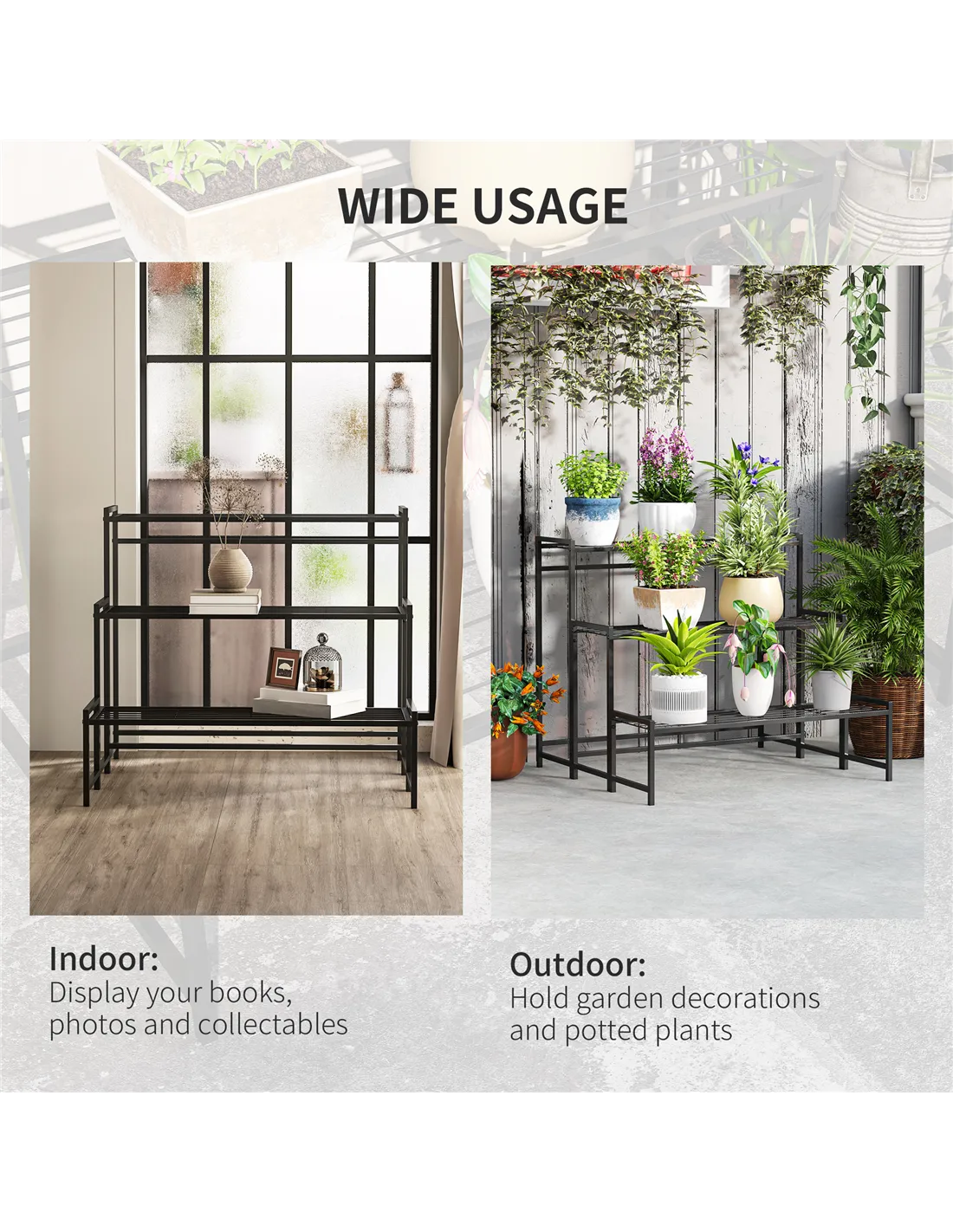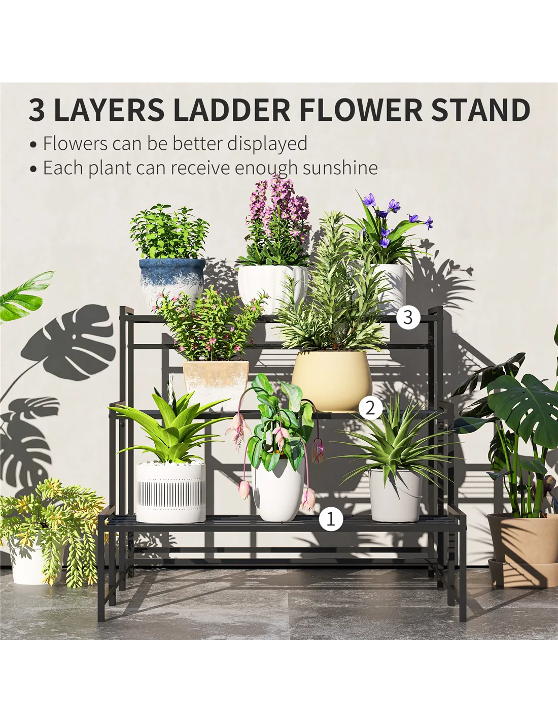 Outsunny Three-Tier Metal Plant Shelf - Black