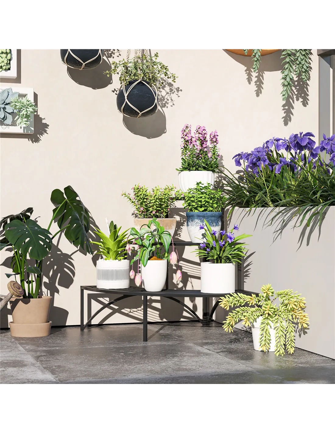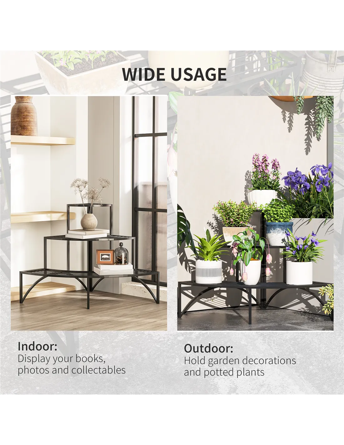Outsunny Three-Tier Corner Metal Plants Shelves - Black
