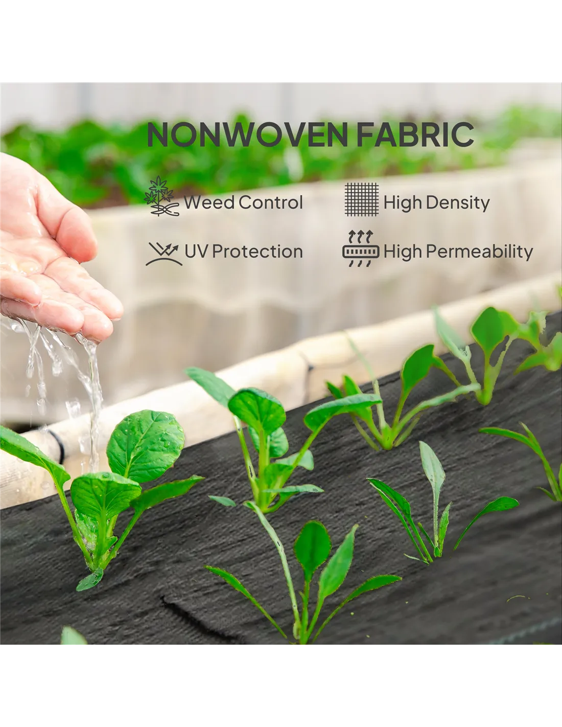 - High-density woven PP allows water and nutrients through