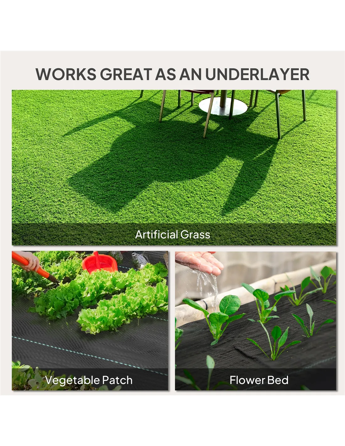 - Ideal for laying beneath patios and decking to prevent weed growth while allowing soil to breathe.