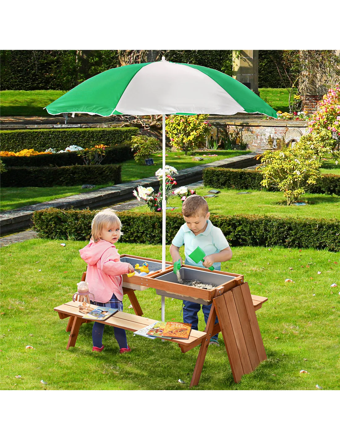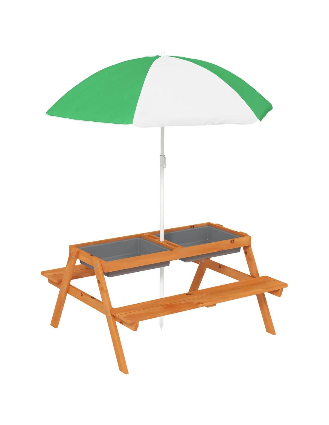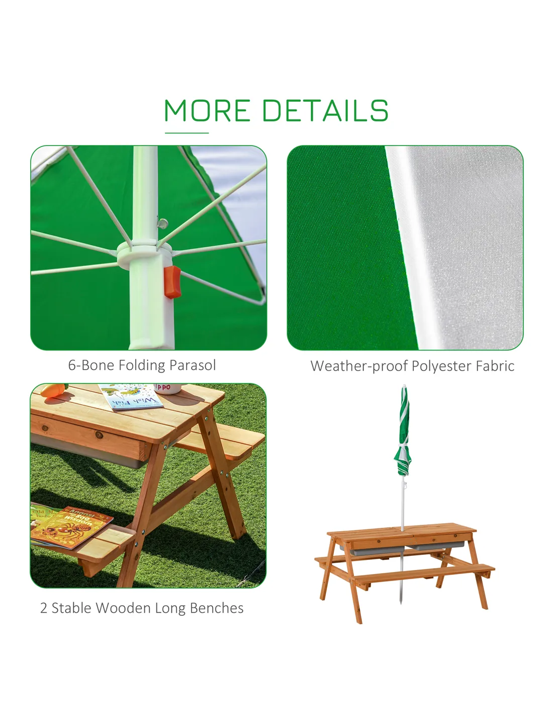 Imagine sunny afternoons in the garden with the Outsunny kids' picnic table! Little ones can enjoy snacks, play games, or get creative with arts and crafts on this solid fir wood table. The removable top reveals hidden storage - great for stashing toys or turning it into a sandbox for endless fun. A height-adjustable umbrella adds cool shade, keeping kids comfy while they play. Whether it's a garden picnic, patio playdate, or outdoor adventure, this table makes every moment magical!