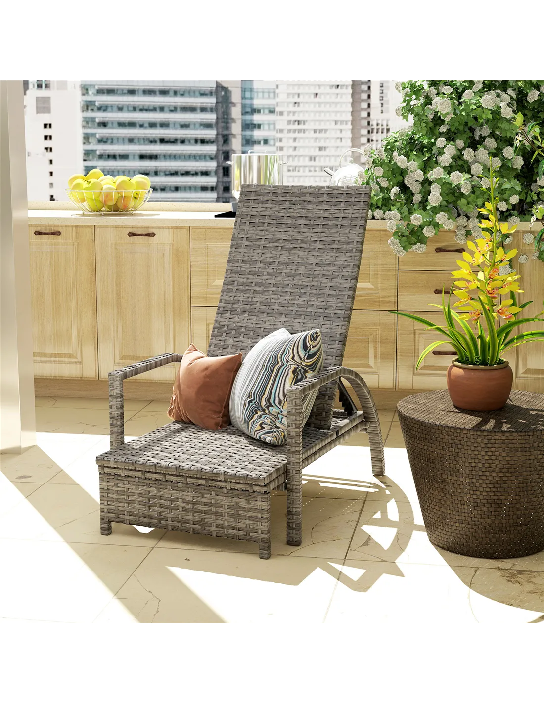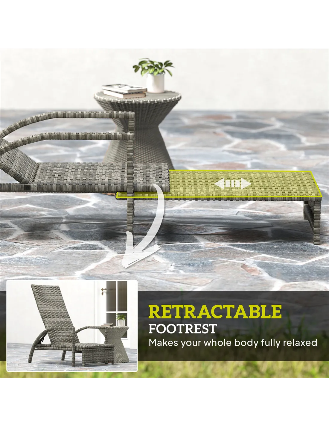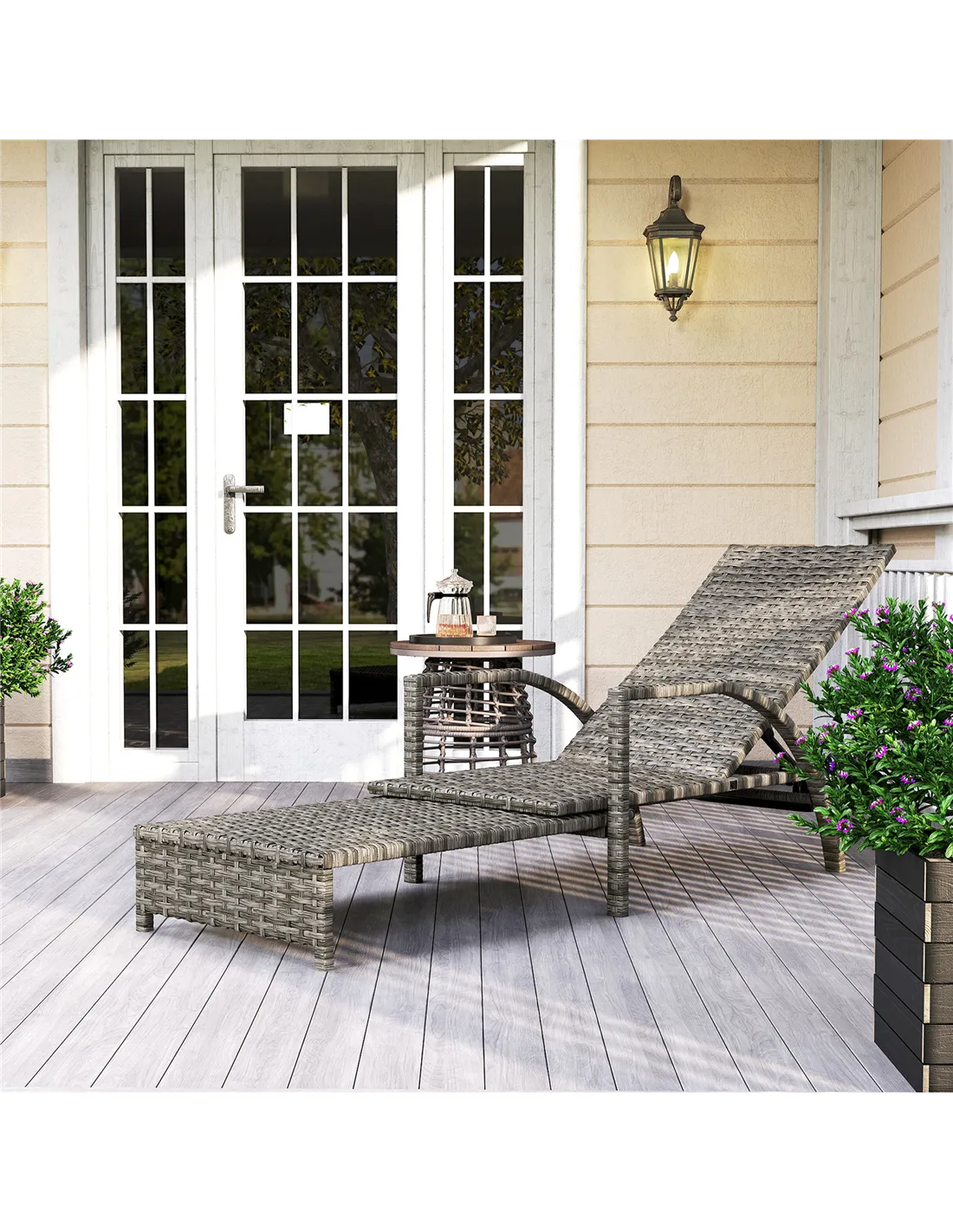 Outsunny Reclining Rattan Lounger, with Extending Footrest - Grey