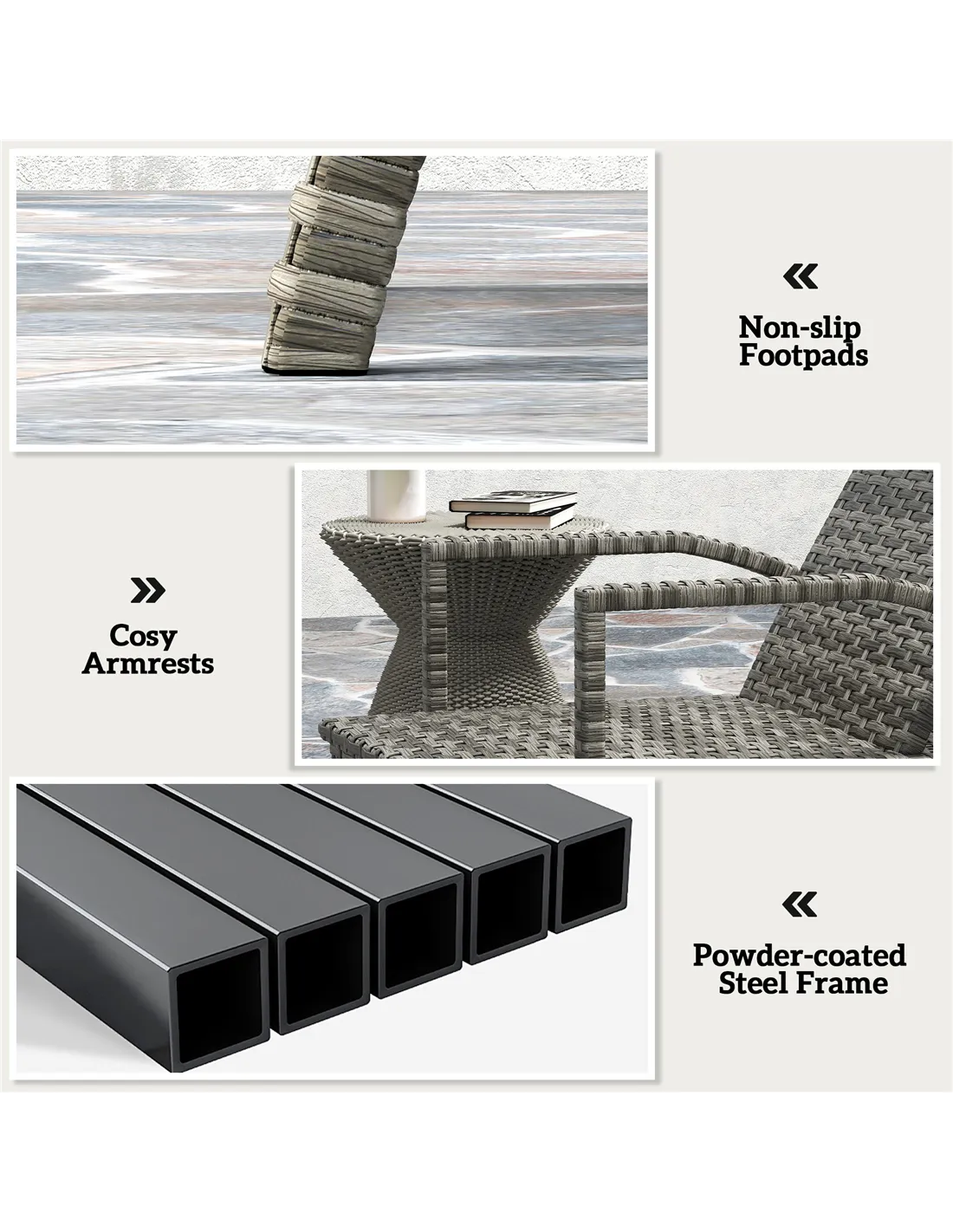 The Outsunny reclining rattan lounger with extending footrest is perfect for creating a relaxing outdoor retreat in your garden, patio, or balcony. Its adjustable backrest and pull-out footrest allow you to find the ideal position for sunbathing, reading, or enjoying a refreshing drink. Thanks to its durable steel frame and weather-resistant PE rattan weave, this lounger withstands the British climate while adding a stylish, contemporary touch to your outdoor space. Pair it with a side table and some cosy cushions to enhance your alfresco experience. Ideal for both quiet mornings and lively summer gatherings, it offers versatile comfort for any outdoor setting.