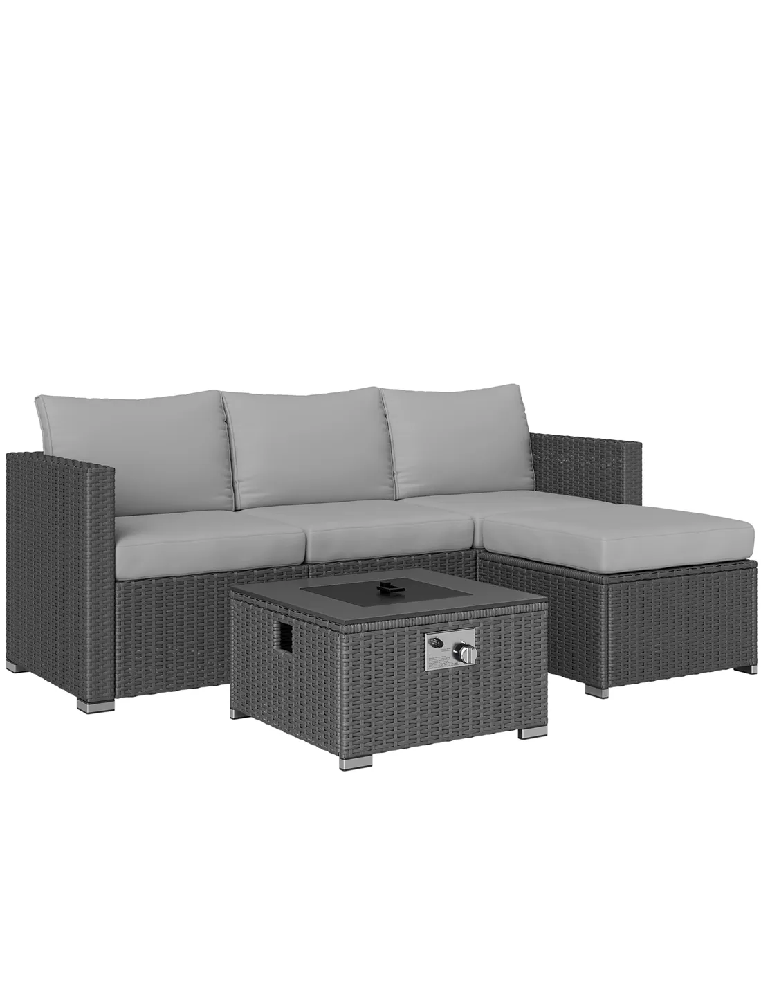 Yes, the fire pit table features a 13 kW metal burner with adjustable flame control and a pulse ignition system, designed for safe outdoor use. It requires an external propane or butane gas tank (not included). - How weather-resistant is the rattan material?