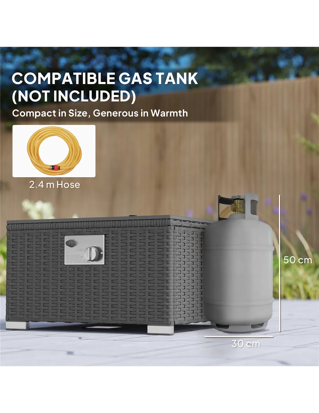 - Gas Tank Size (not included): Ф30 x 50H cm