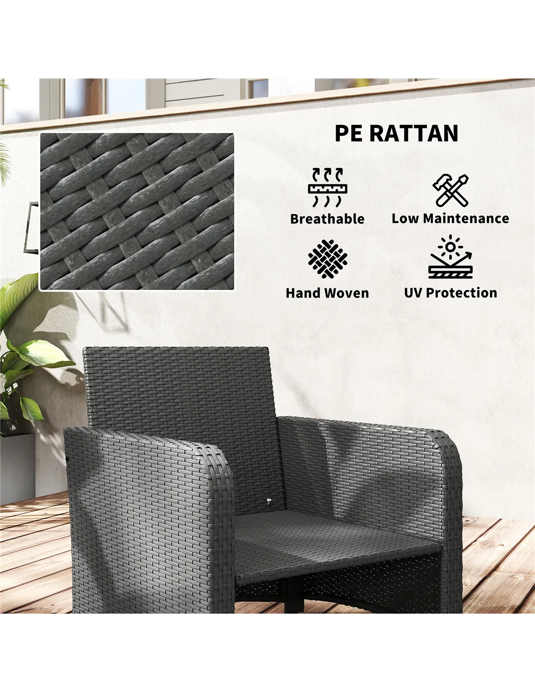 Transform your garden into a cosy retreat with the rattan furniture set from Outsunny. This five-piece outdoor garden furniture ensemble, featuring two chairs, two versatile footstools and a chic two-tier coffee table, offers a great setting for leisurely afternoons. Enjoy wide seating with thick cushions for comfort. Easily slide ottomans under the chairs when not in use, saving space and keeping your outdoor area neat and organised. Great for any garden, conservatory, or balcony setup.