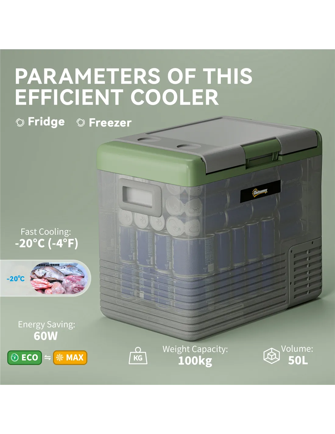 Outsunny 50L Portable Car Refrigerator - Light Green and Grey