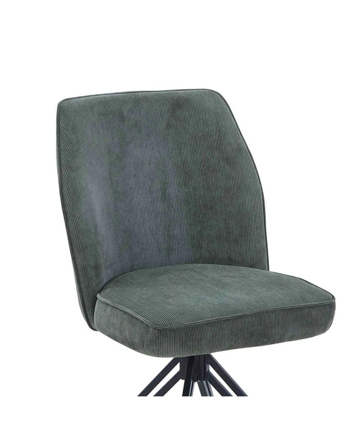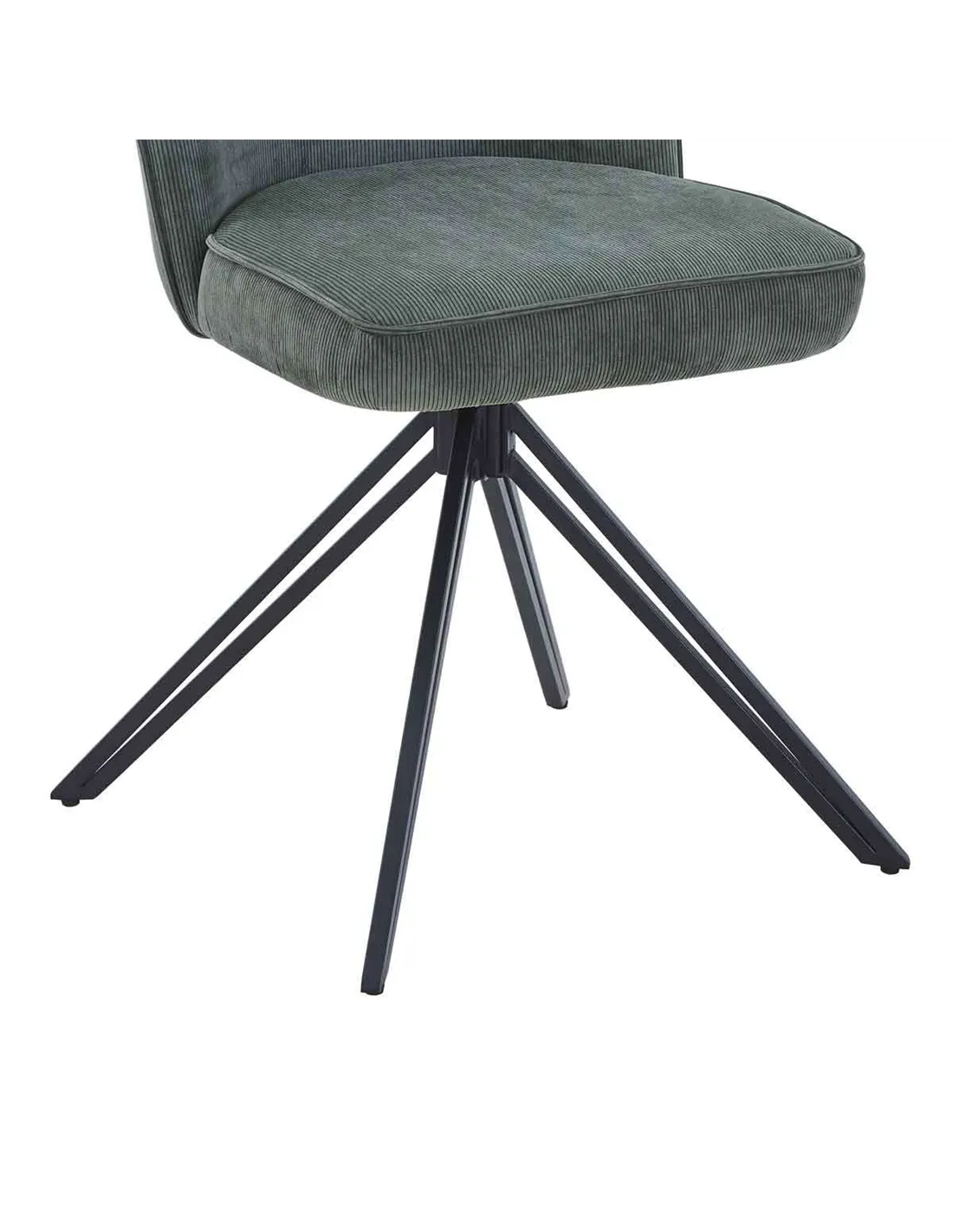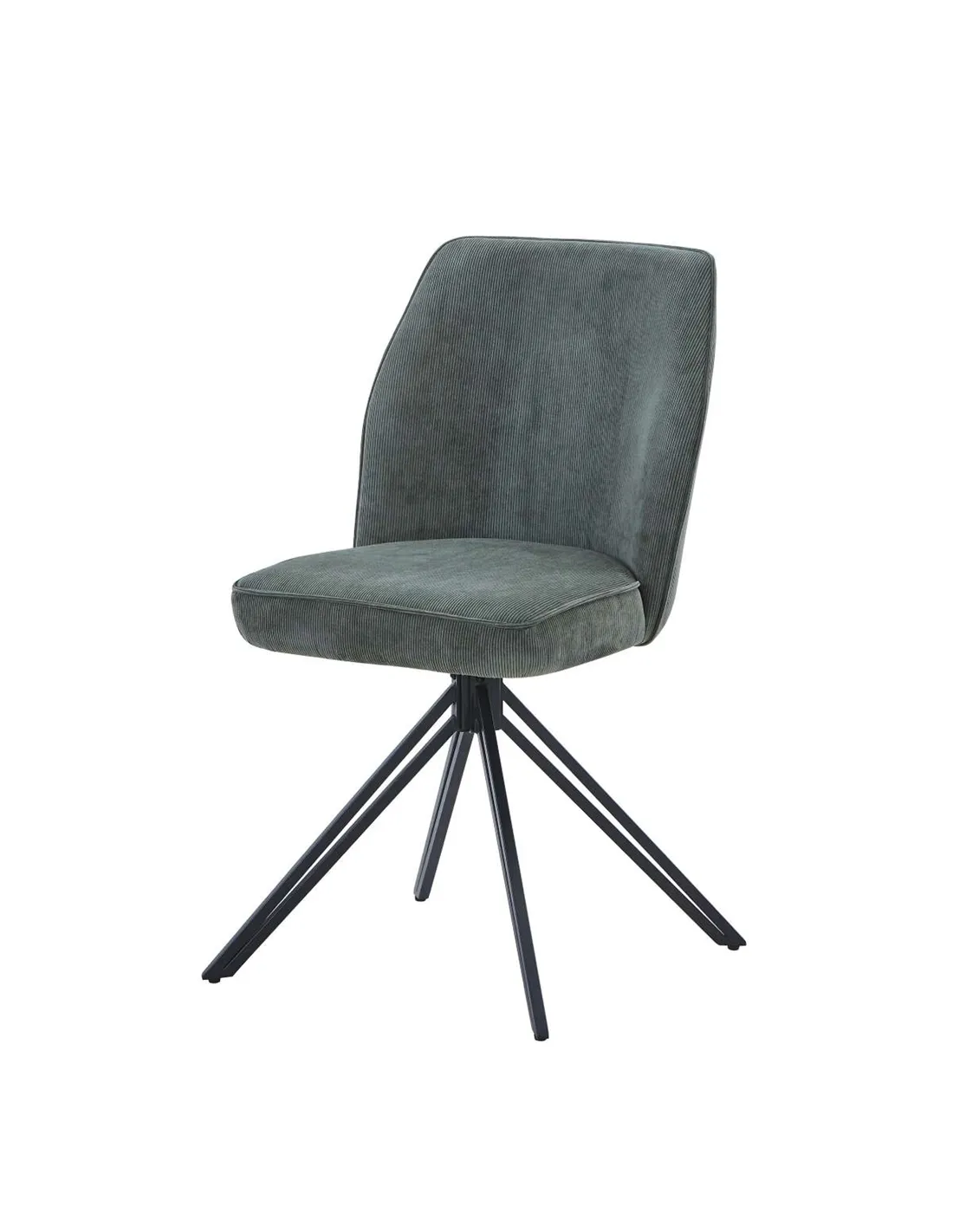 This Pair of Swivel Arm Chairs are designed to add style and comfort to your dining space. The seat, back and arms are made from Ply wood whuch is expertly curved to provide the contours to maximise comfort. These are upholstered in a Green Cord fabric with a feature stitch detailing to the back and a deep sumptuous foam filled seat with piping detailing to add that extra flair to your chairs. The base is made from real metal welded into a tripod design double metal leg design, the seat and base are connected using a concealed metal turntable enabling 360 degree rotation. The smooth rotation action is aided by a ballbearing mechanisim which ensures easy use anytime.