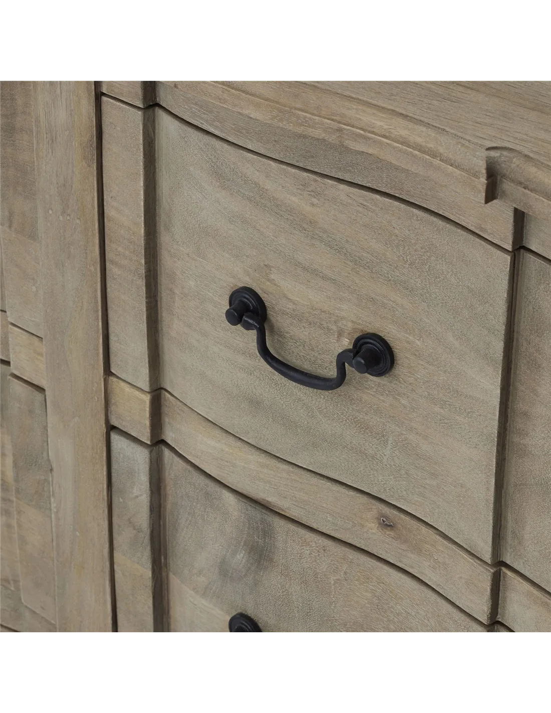 Its unique washed and bleached finish adds a touch of class, while the distinctive black ironwork handles offer a striking contrast. This chest is more than just a storage solution; it's an investment in quality and style. Whether you're revamping your bedroom or enhancing your living space, this chest is a must-have. Don't miss the chance to own this exclusive piece. Add to your basket now and transform your home with a touch of elegance.