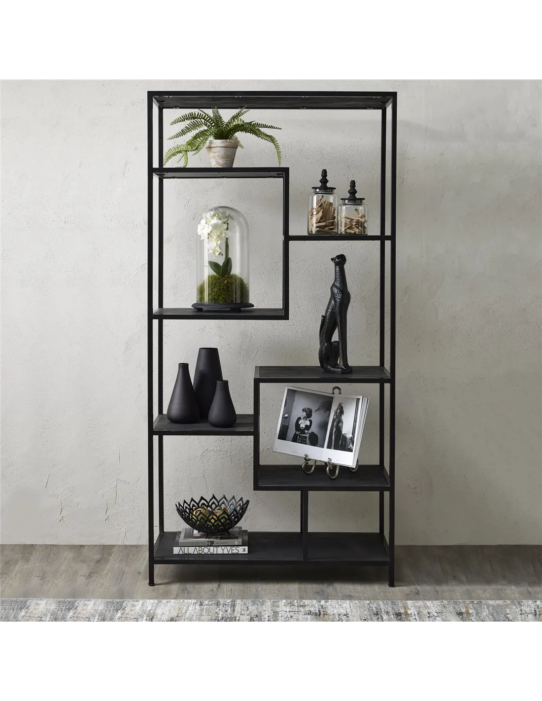 Crafted from durable metal, this shelf unit is built to last, ensuring you enjoy its beauty and utility for years to come. Its sleek black finish complements any decor, while the varied shelf heights provide ample space for displaying your favourite items. Whether you're showcasing books, art, or plants, this unit enhances their appeal with its unique design.