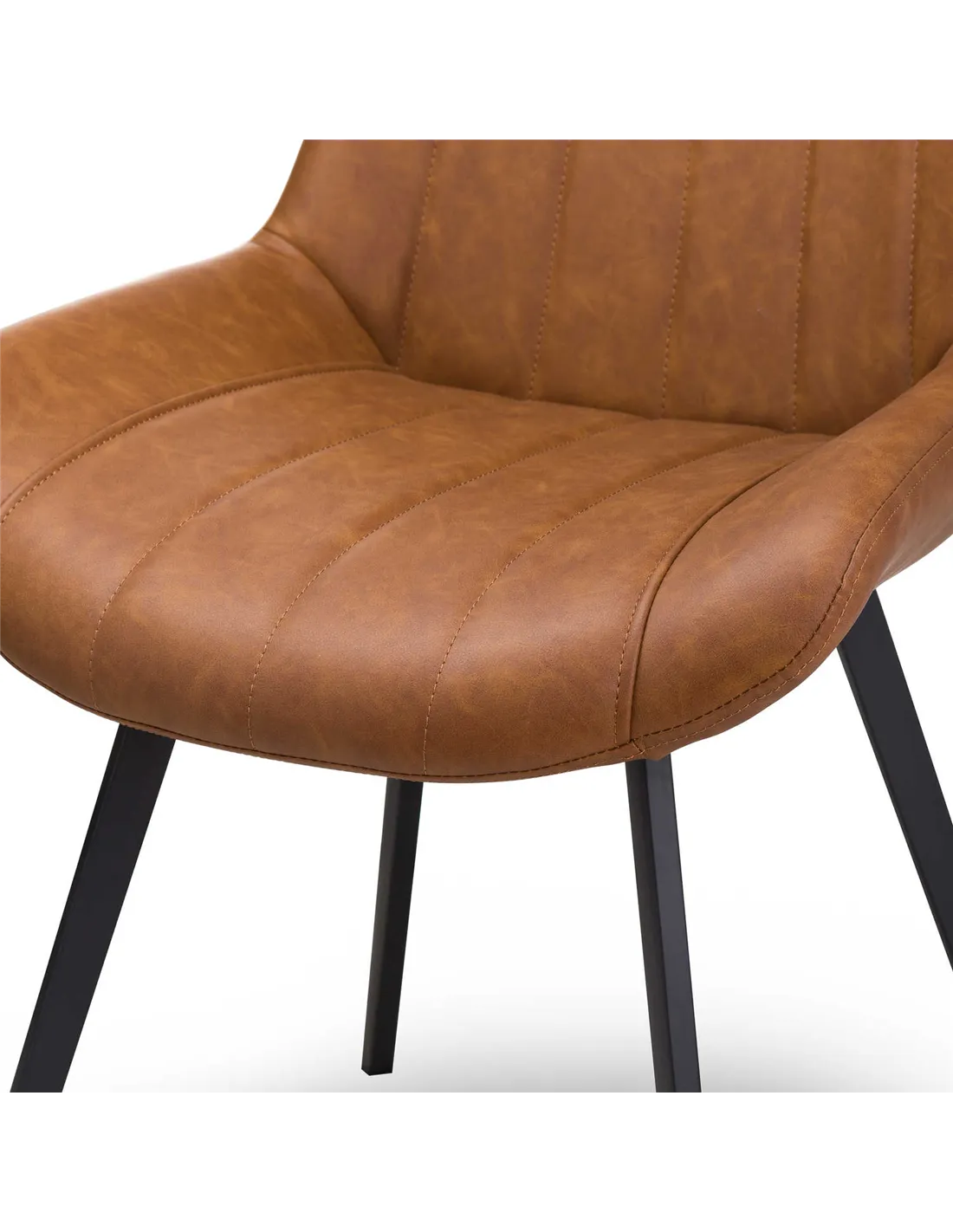 - The chair features high-quality tan faux leather upholstery paired with sturdy black legs, combining durability with a modern aesthetic.