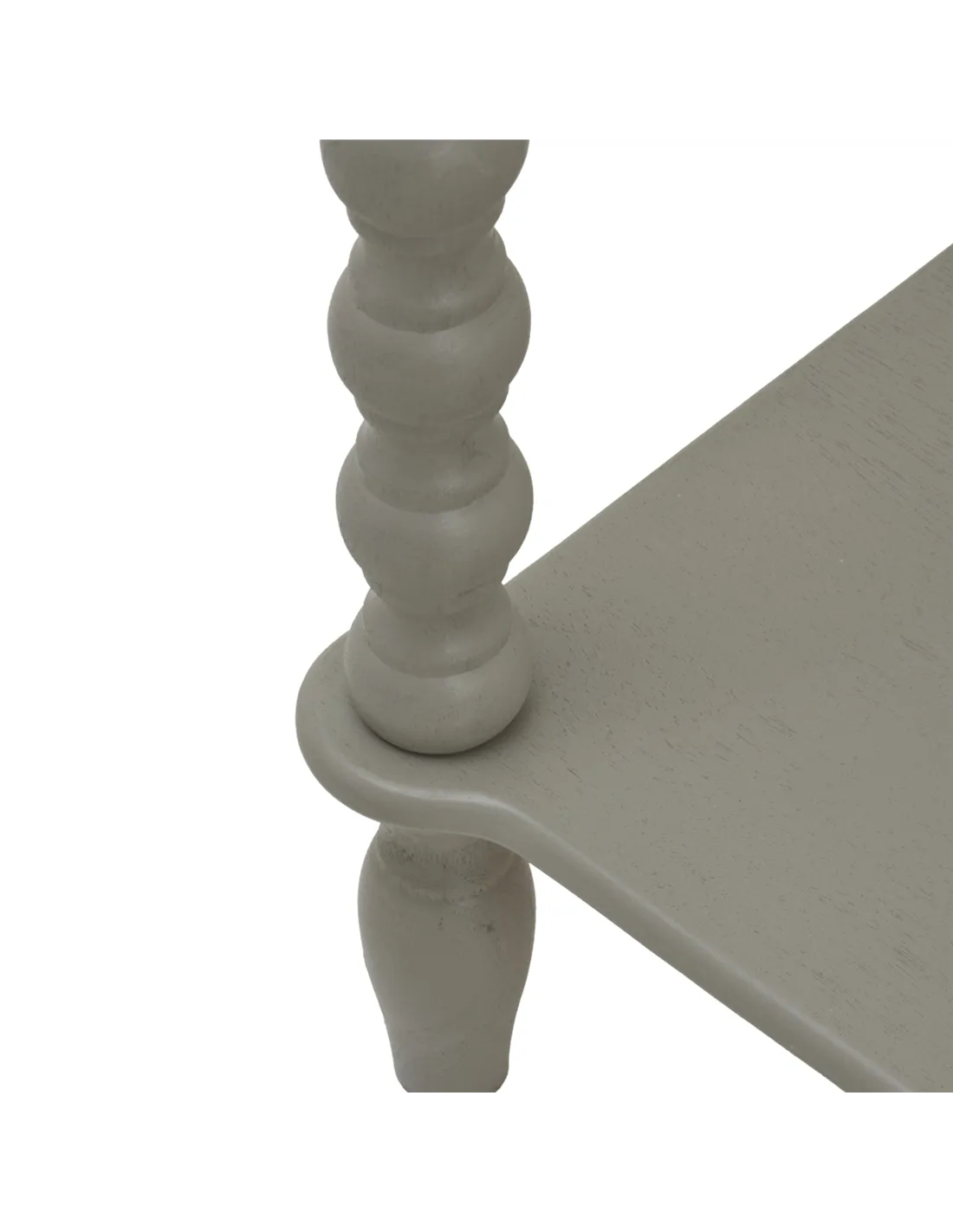 - The table is crafted from solid wood, finished in a stylish grey tone that highlights the natural grain, ensuring durability and timeless appeal.