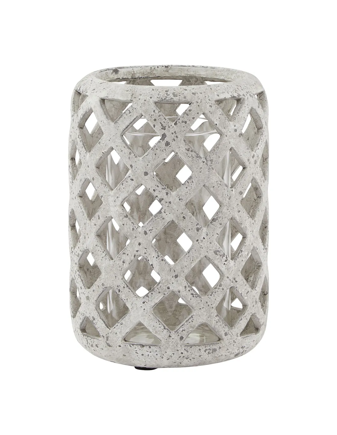 Hill Interiors Grey Stone Effect Hurricane Lantern