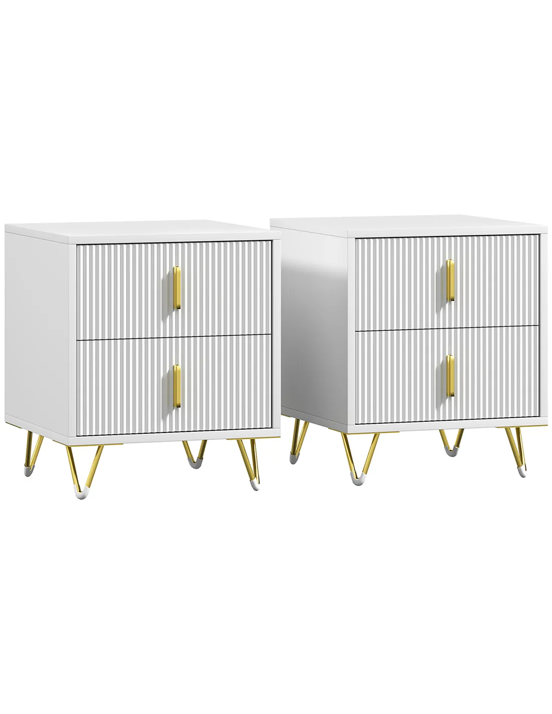 Set of 2 Elegant Chest of Two Drawers - White/Gold-Tone