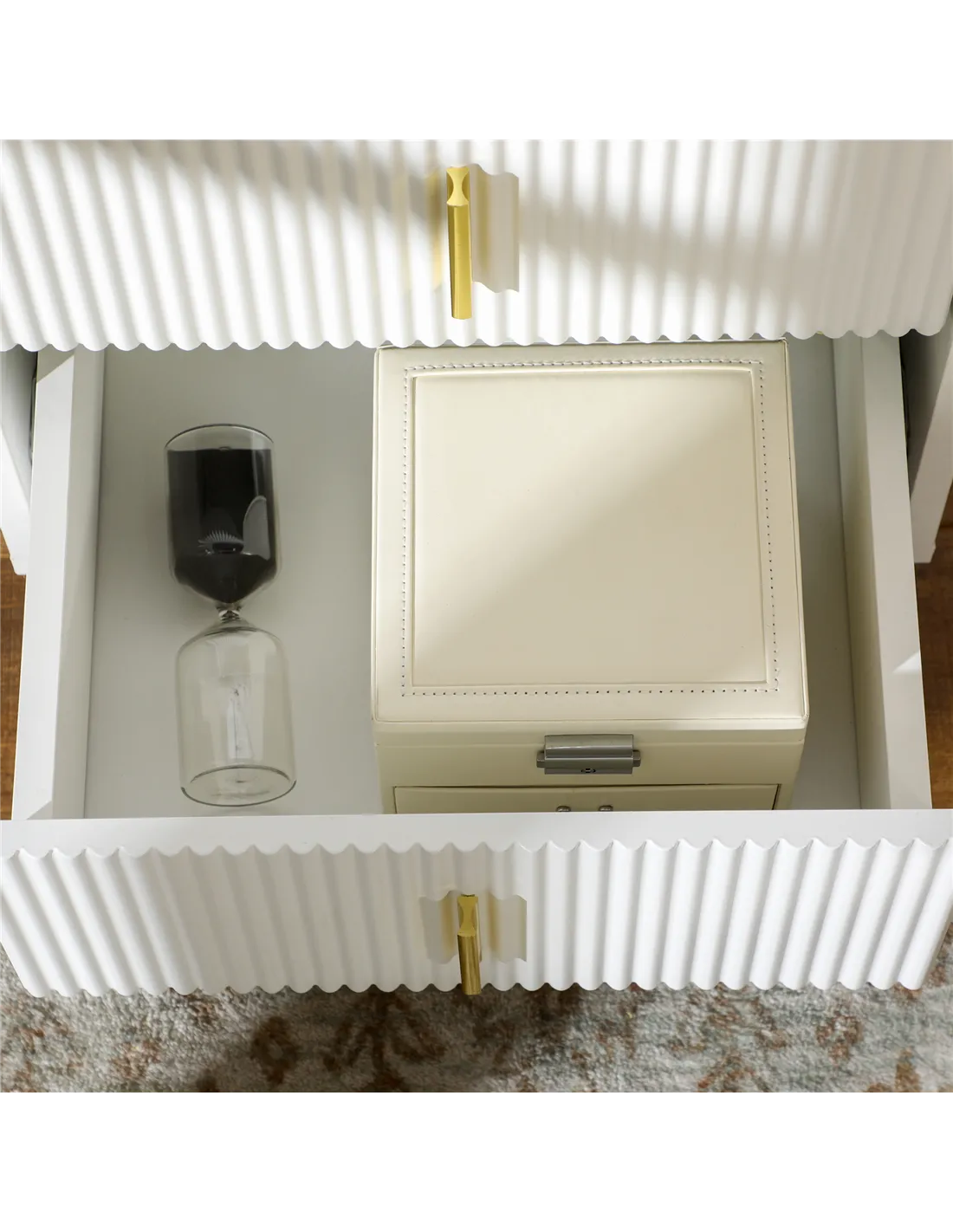 - Elegant drawer unit: white colour, with ridged front for texture and gold coloured accents