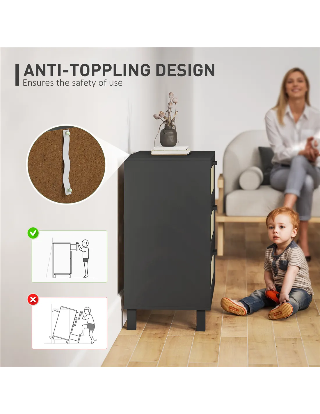 - Anti-tipping straps for added safety