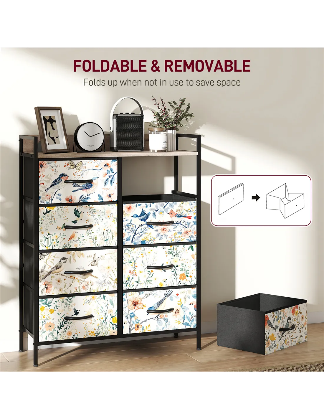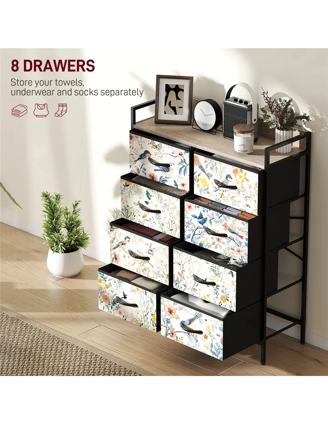 Transform your space with the HOMCOM chest of drawers, where style meets functionality! Adorned with exquisite patterns on each drawer panel, this bedroom drawers add a touch of elegance to any room. With eight fabric drawers that are both removable and foldable, organising has never been easier. Great for bedrooms, living rooms, or home offices to keep your essentials tidy.