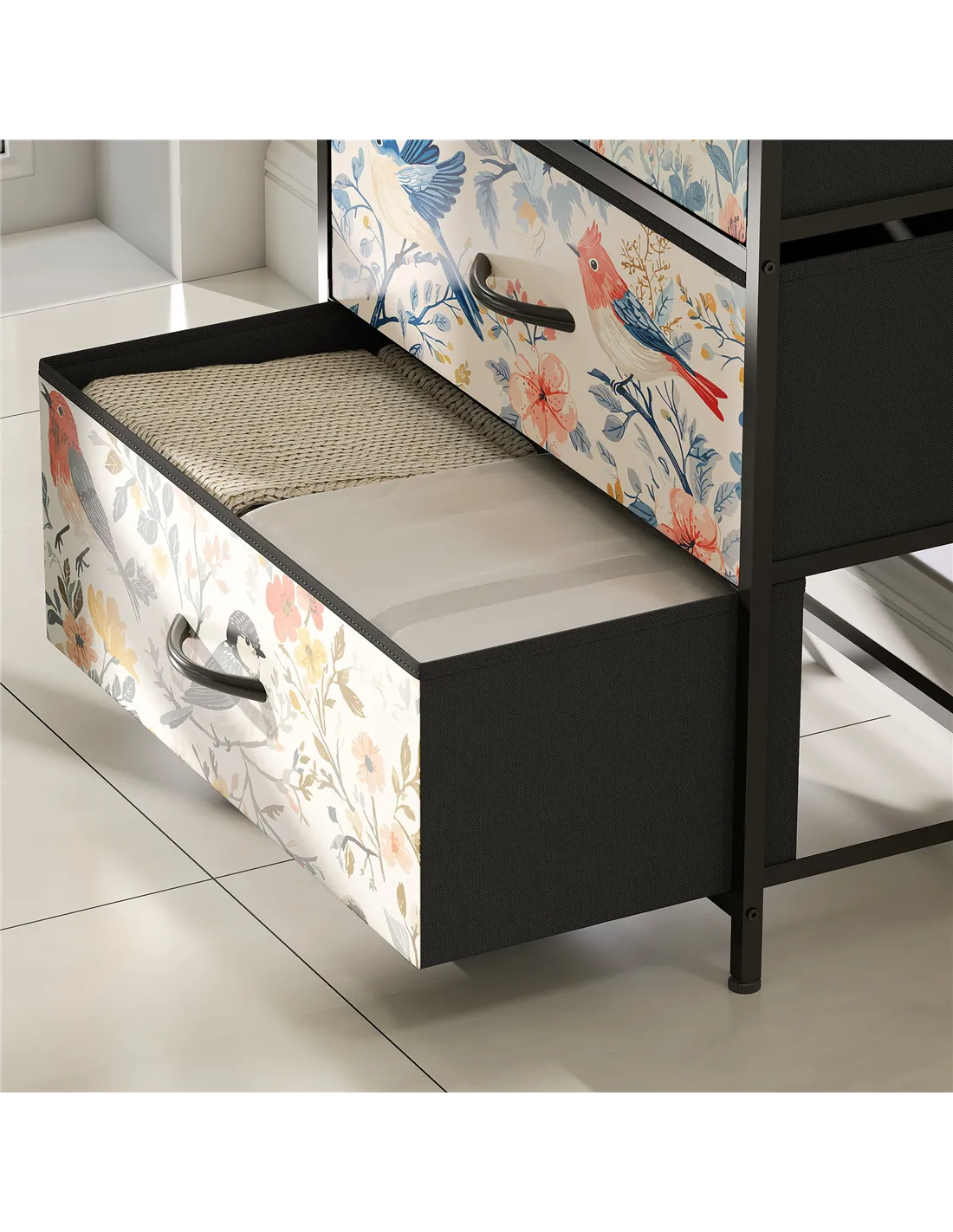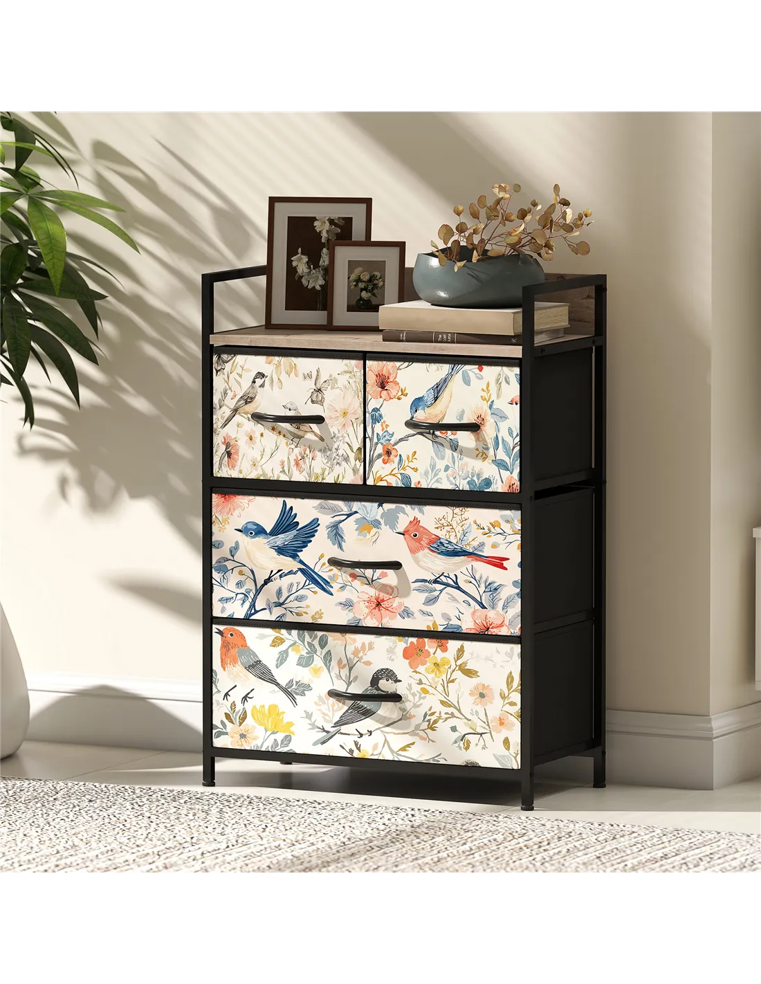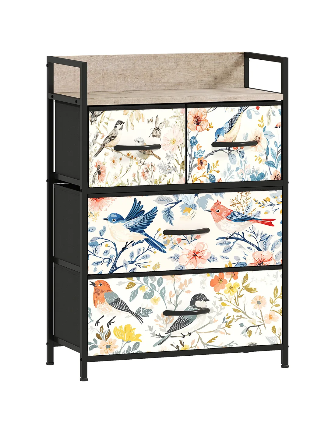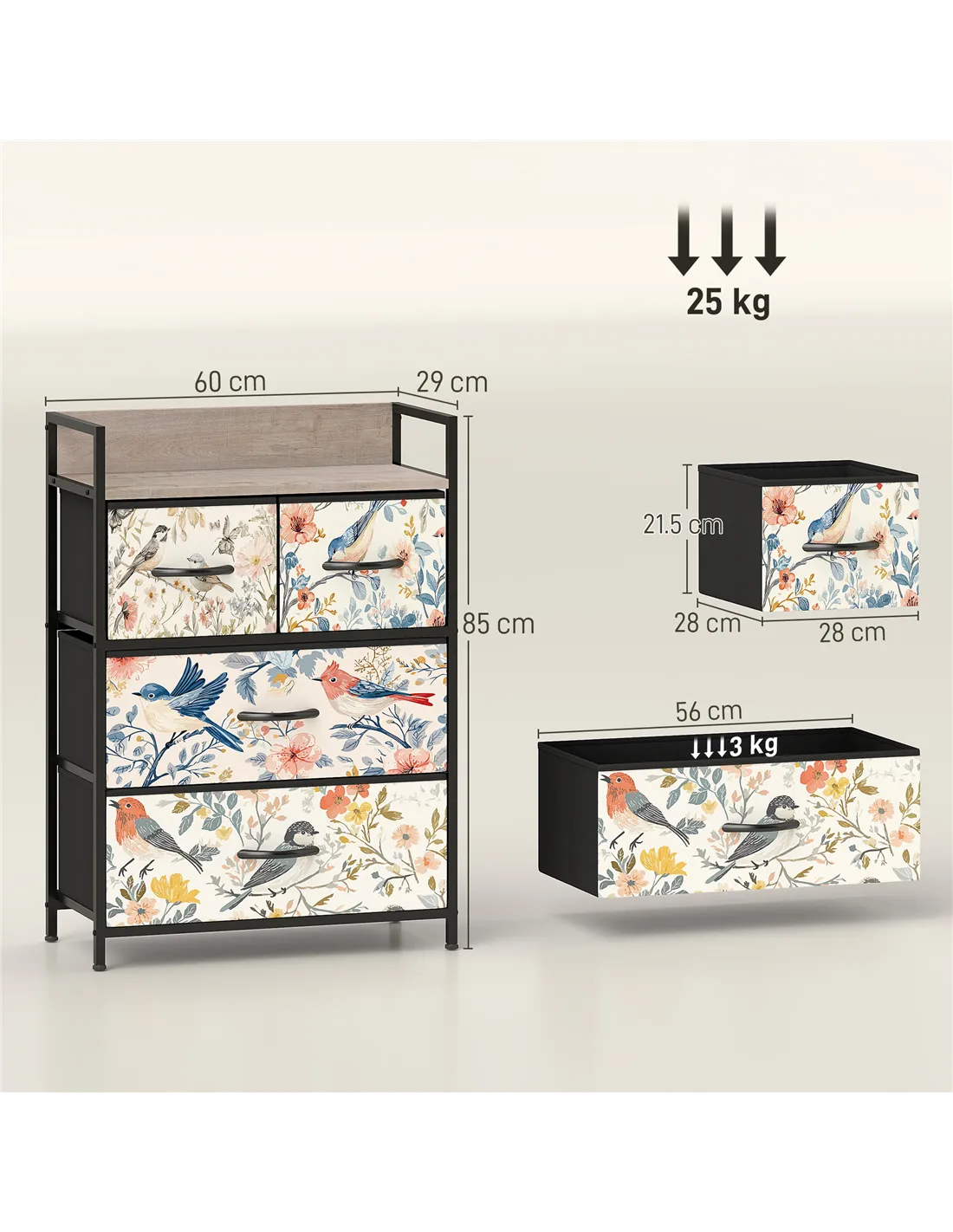 Transform your space with the HOMCOM chest of drawers, where style meets functionality! Adorned with exquisite patterns on each drawer panel, this bedroom drawers add a touch of elegance to any room. With four fabric drawers that are both removable and foldable, organising has never been easier. Great for bedrooms, living rooms, or home offices to keep your essentials tidy.