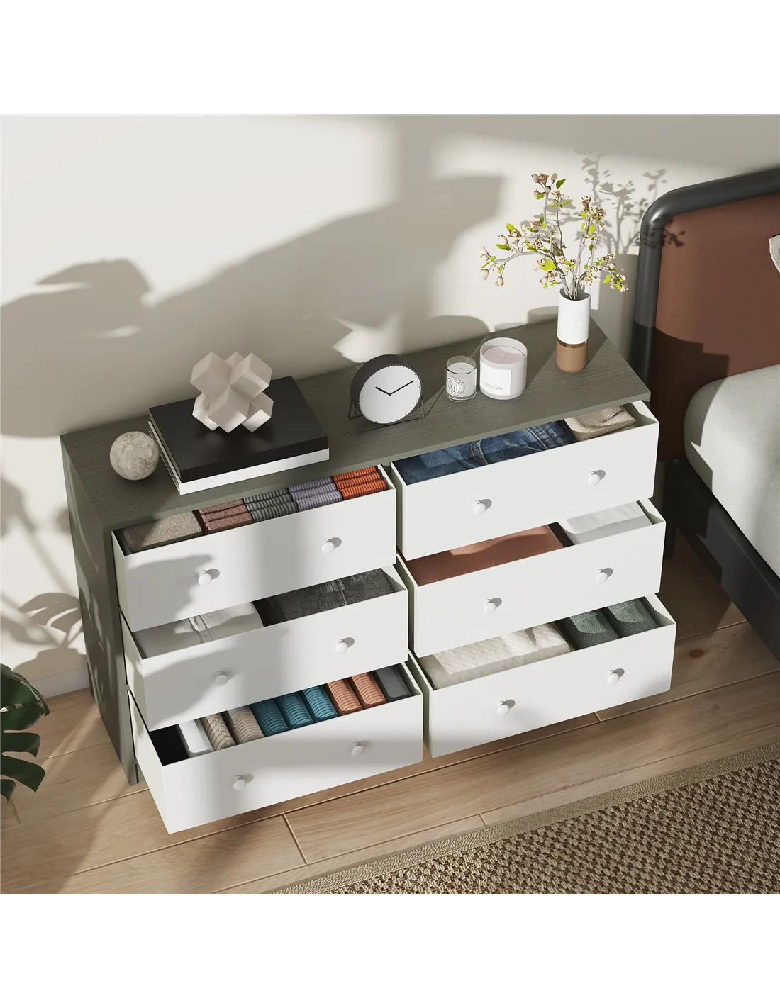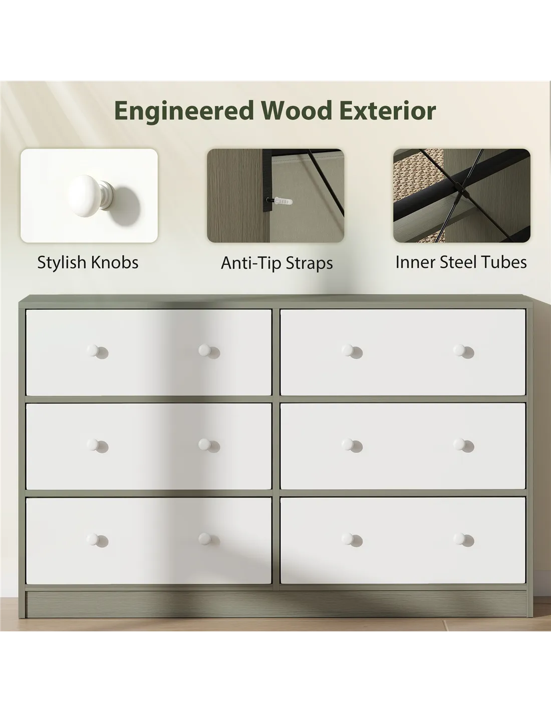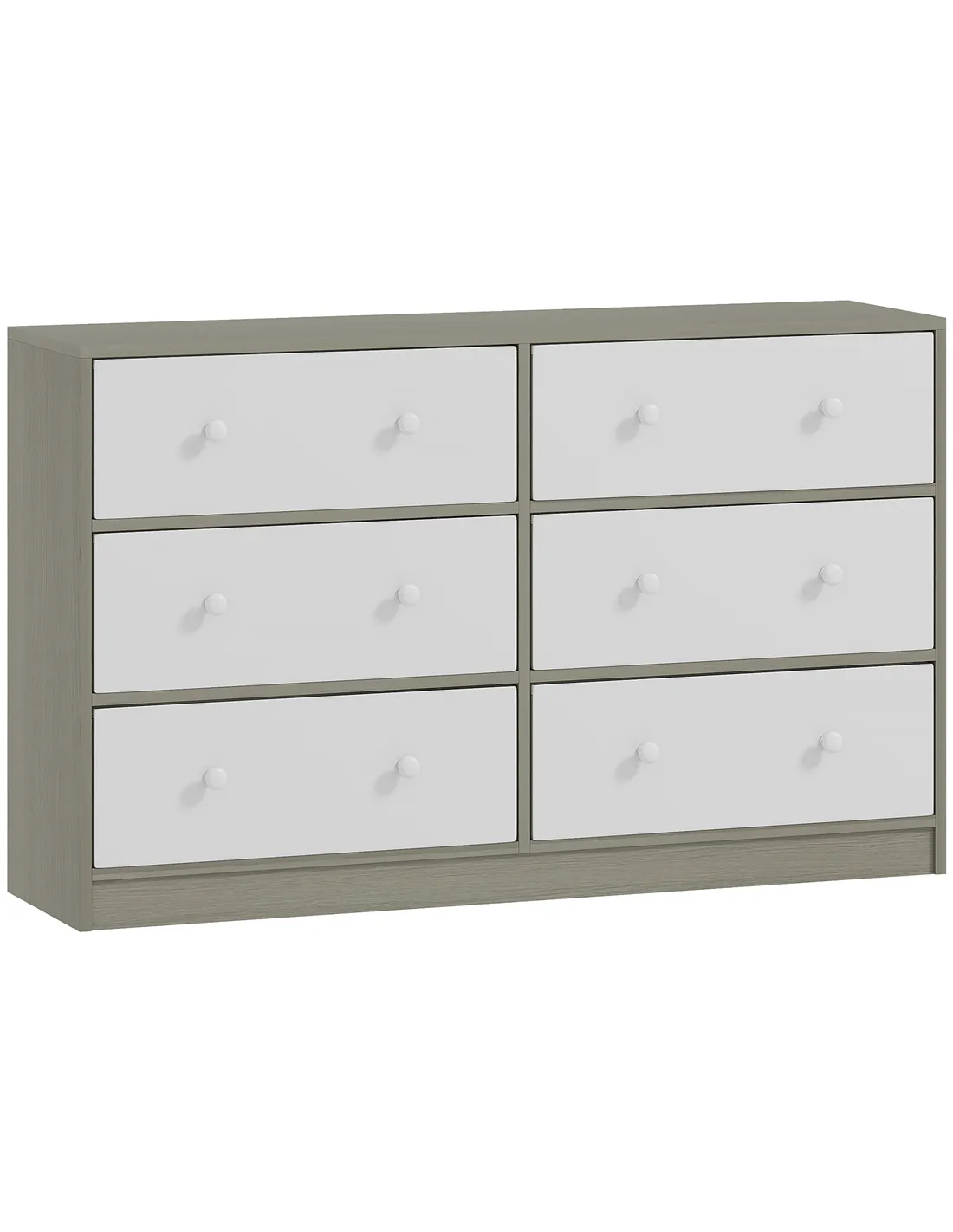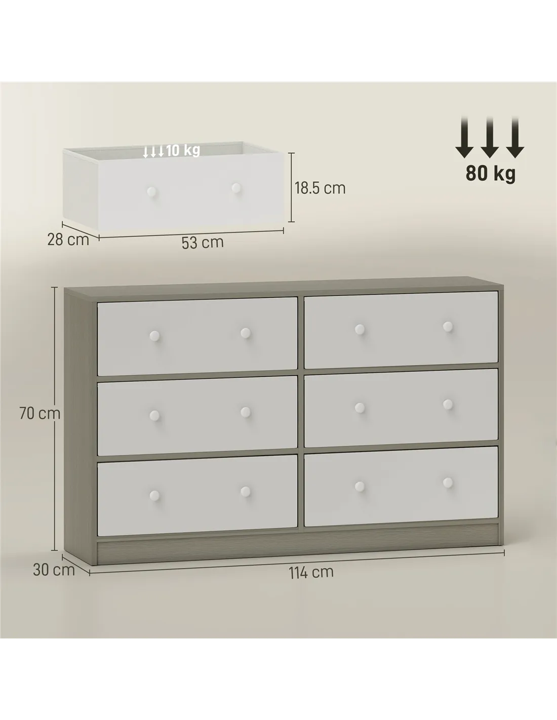 Bring style and order to your bedroom with this chest of drawers from HOMCOM. Featuring six foldable fabric drawers, it makes sorting clothes like T-shirts, jeans and socks simple. The two-tone design, white and grey wood-effect, brings a stylish look. The MDF and steel frame ensures stability, while anti-tip straps add safety. Transform your space into a serene haven with this HOMCOM dresser.