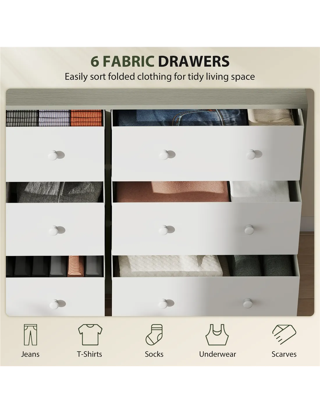 - Six fabric drawers neatly sort clothes, socks and accessories