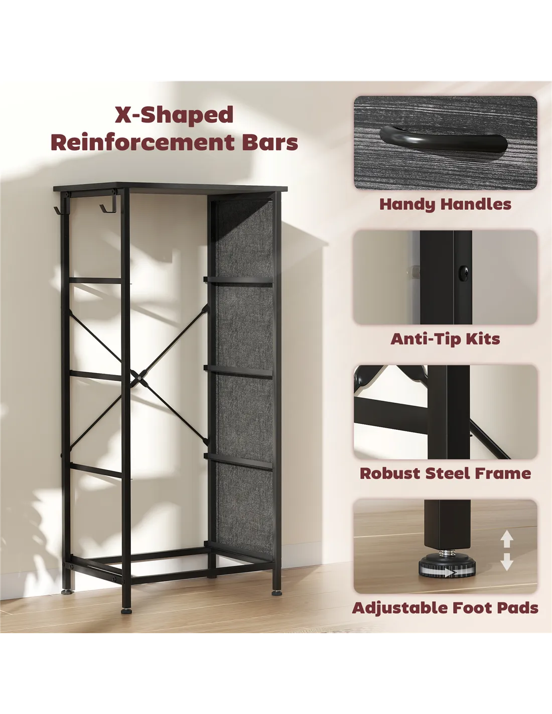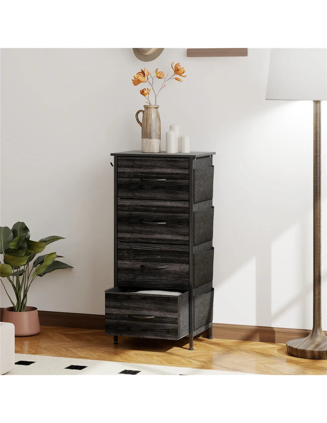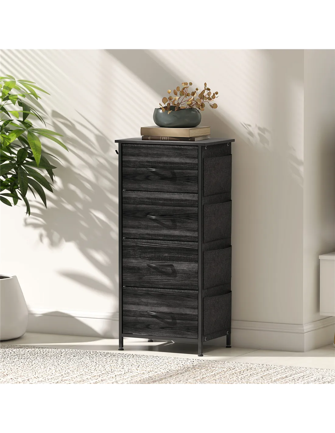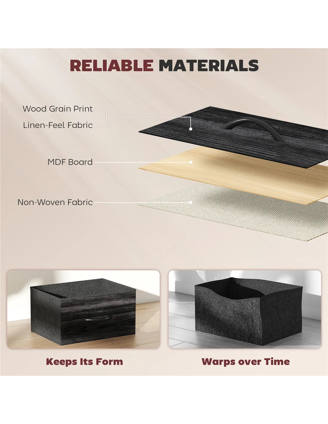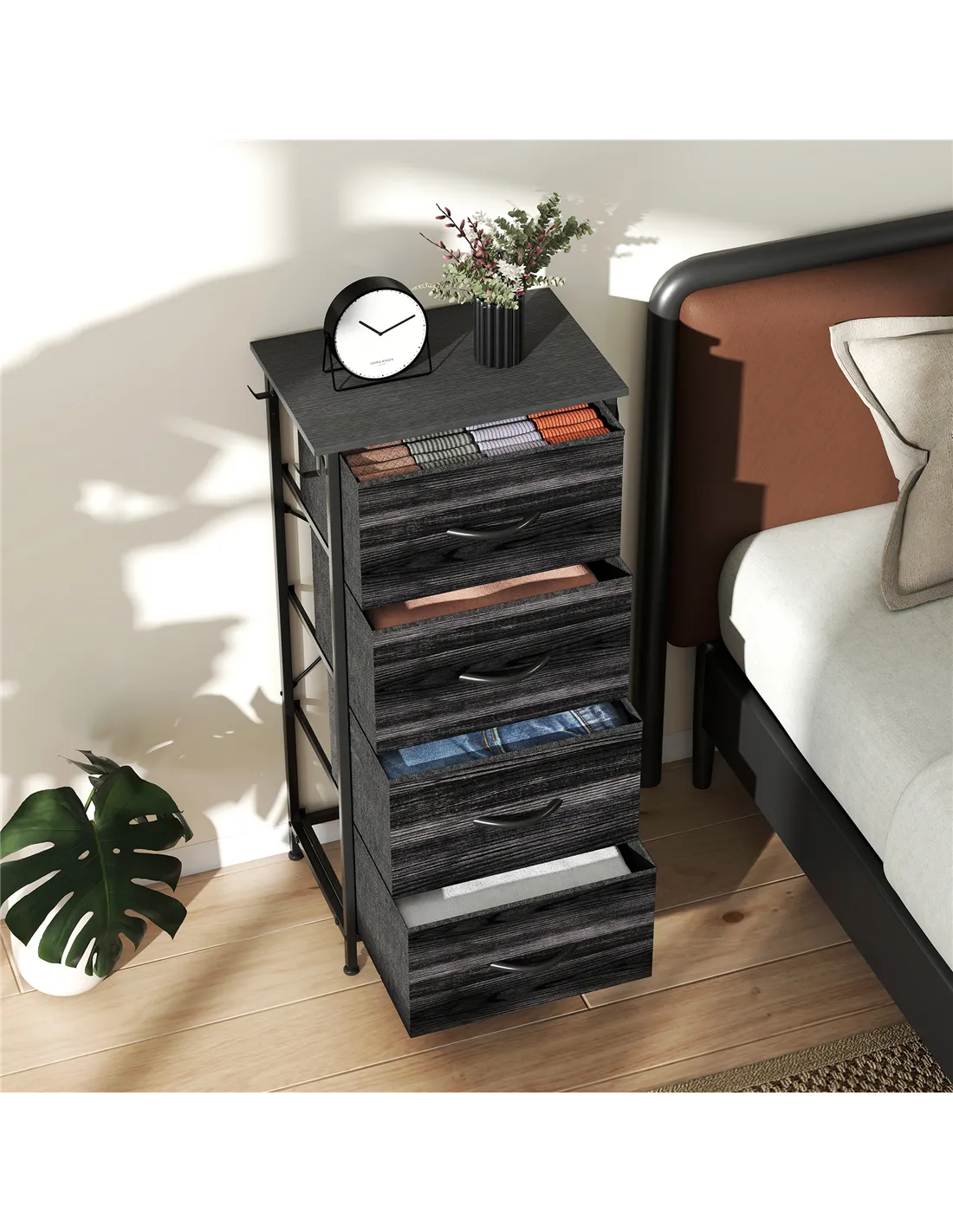Easy, simple storage with this HOMCOM fabric chest of drawers. With four same drawers, it's easy to sort everything from socks to pants. It also features four side pockets and two hooks to get smaller accessories altogether. A steel frame with X-bars keeps this bedroom dresser stable, finished with adjustable feet for balance - even on unsteady grounds.