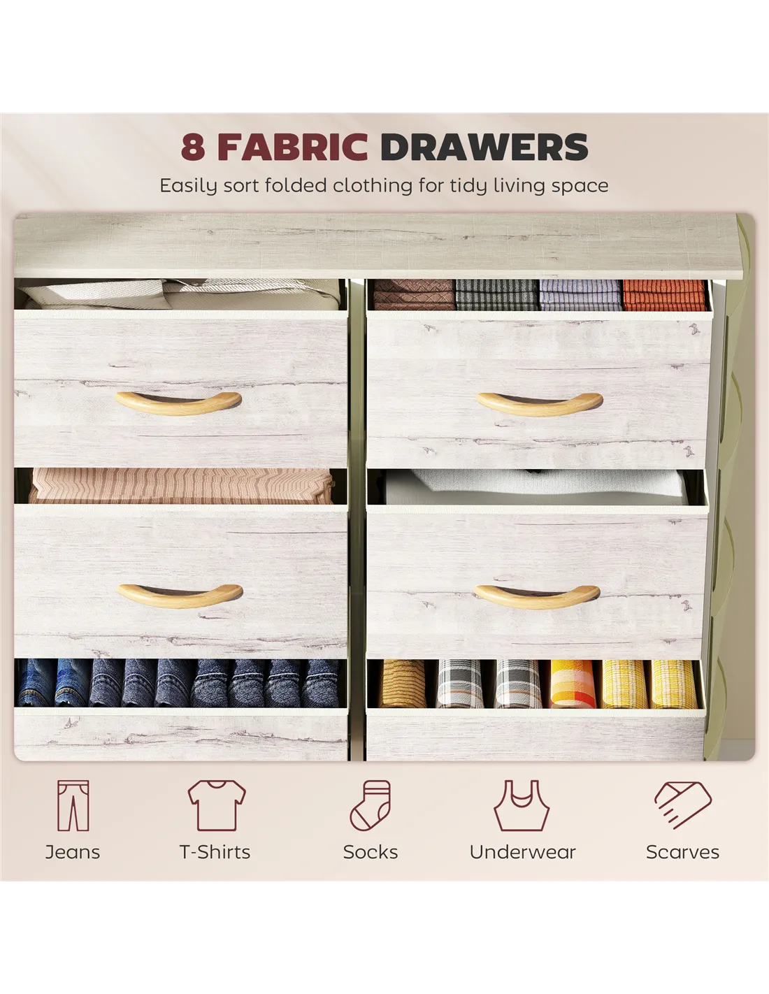 - Eight equal-sized drawers: plenty of room for storing and organising clothes