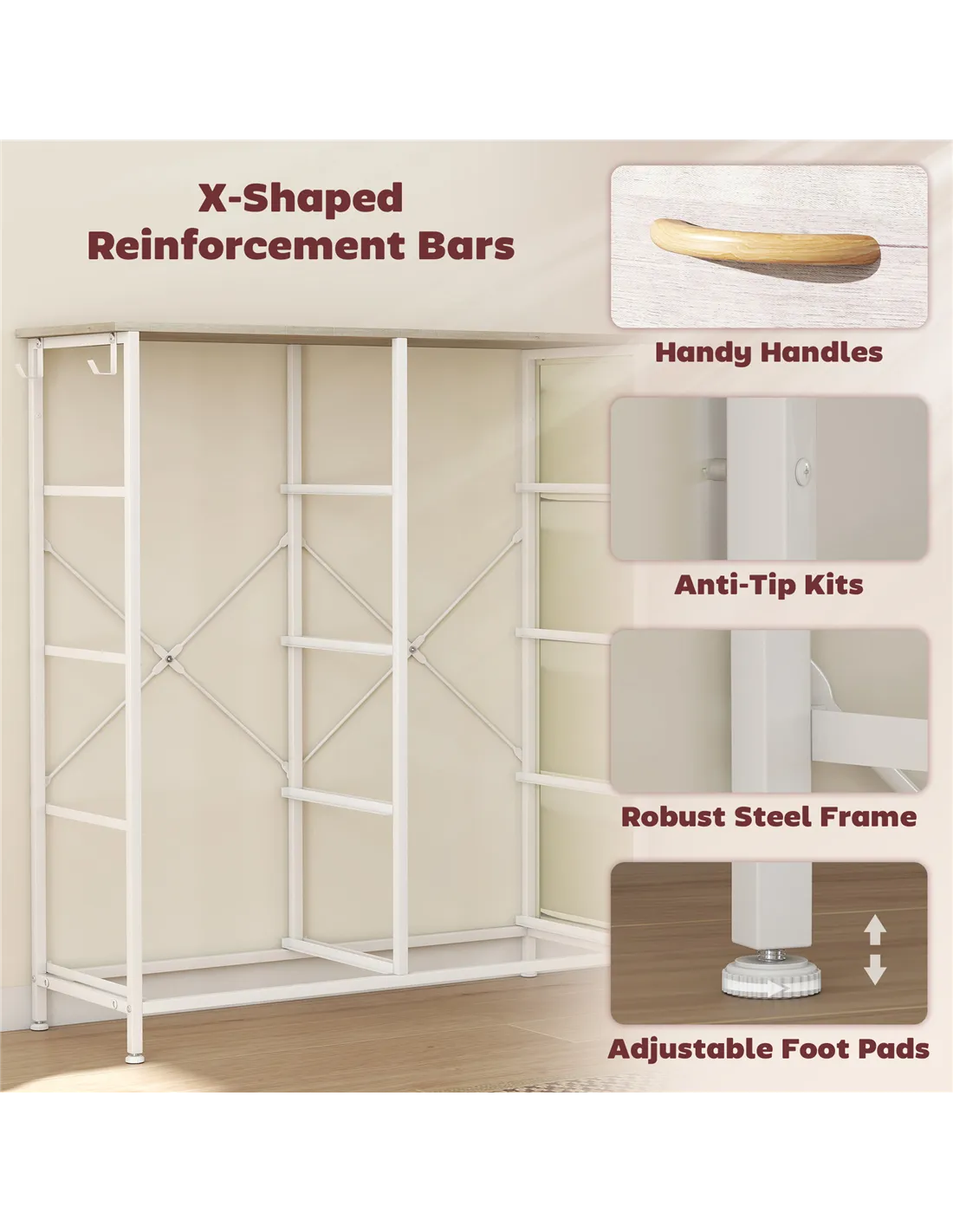 - Materials: Non-Woven Fabric, Steel, Particle Board