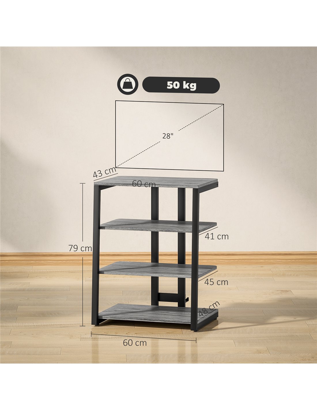- Maximum load 50kg, assembly required