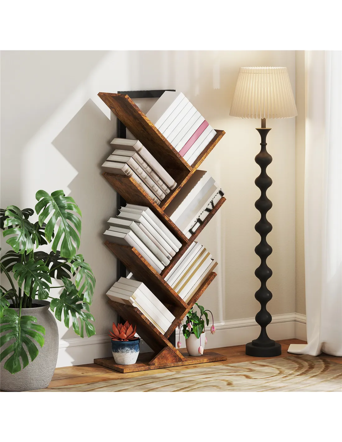 HOMCOM Six-Section Tree Bookcase - Wood-Effect