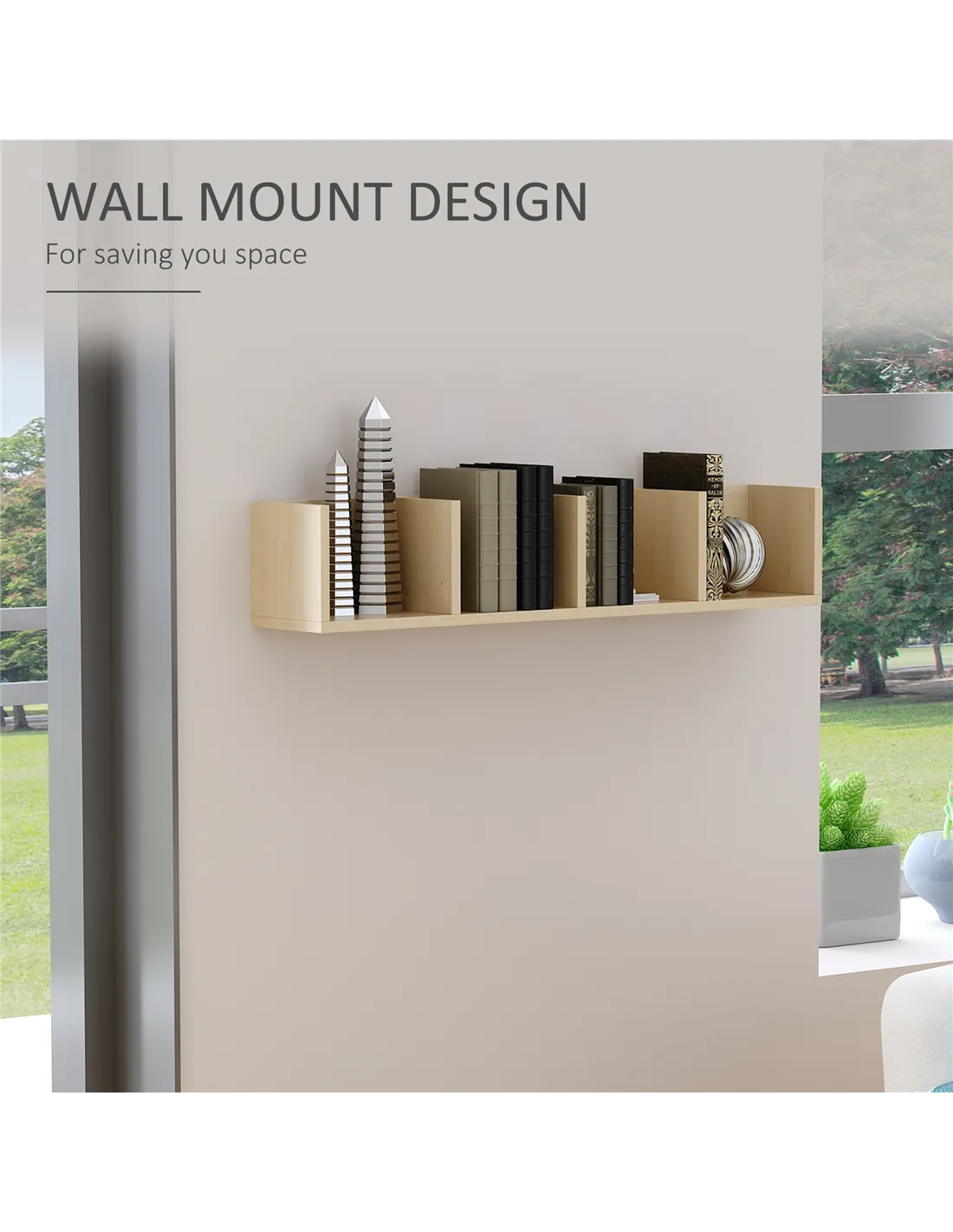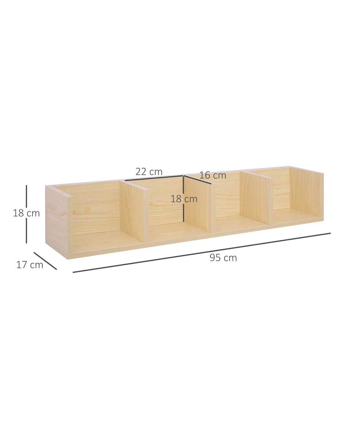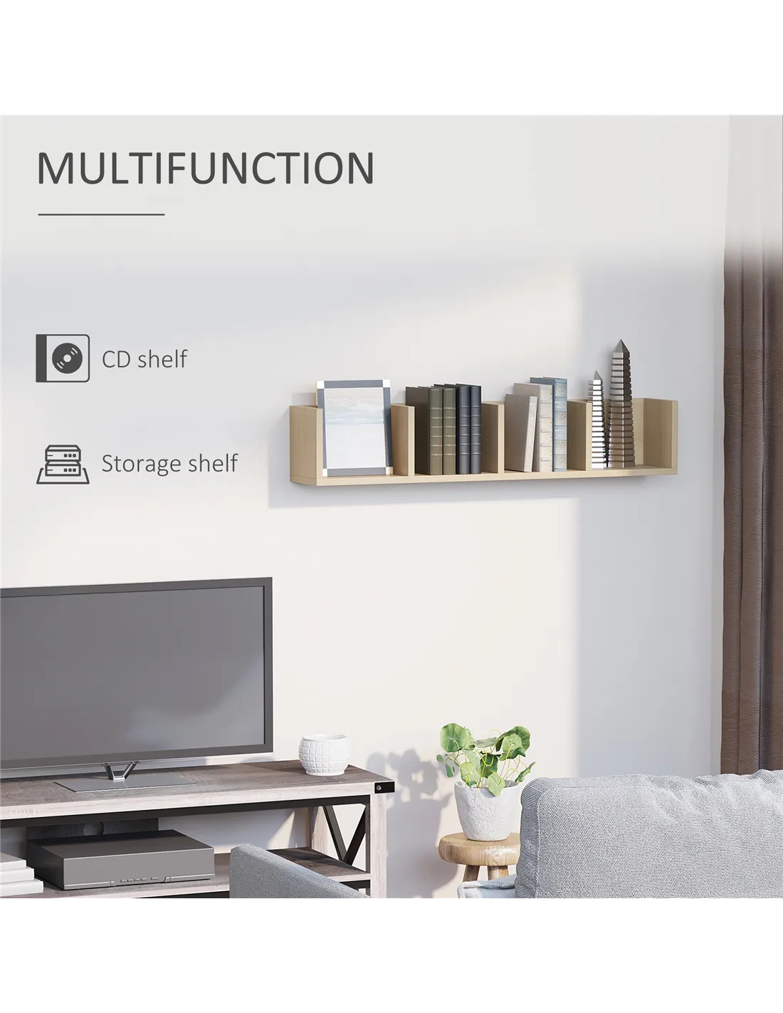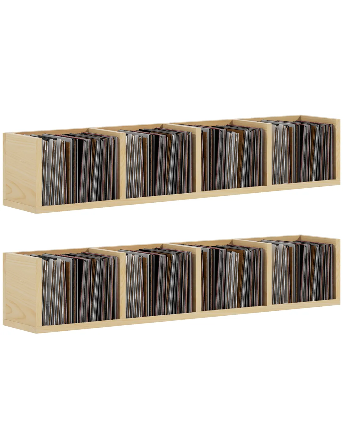 HOMCOM Wall Mount 84 CD / 56 DVD/Blu-ray/ Media Storage Rack 4 Cubes, Wooden Shelf Organiser Unit Bookcase Display, Set of 2, Natural Wood Finish