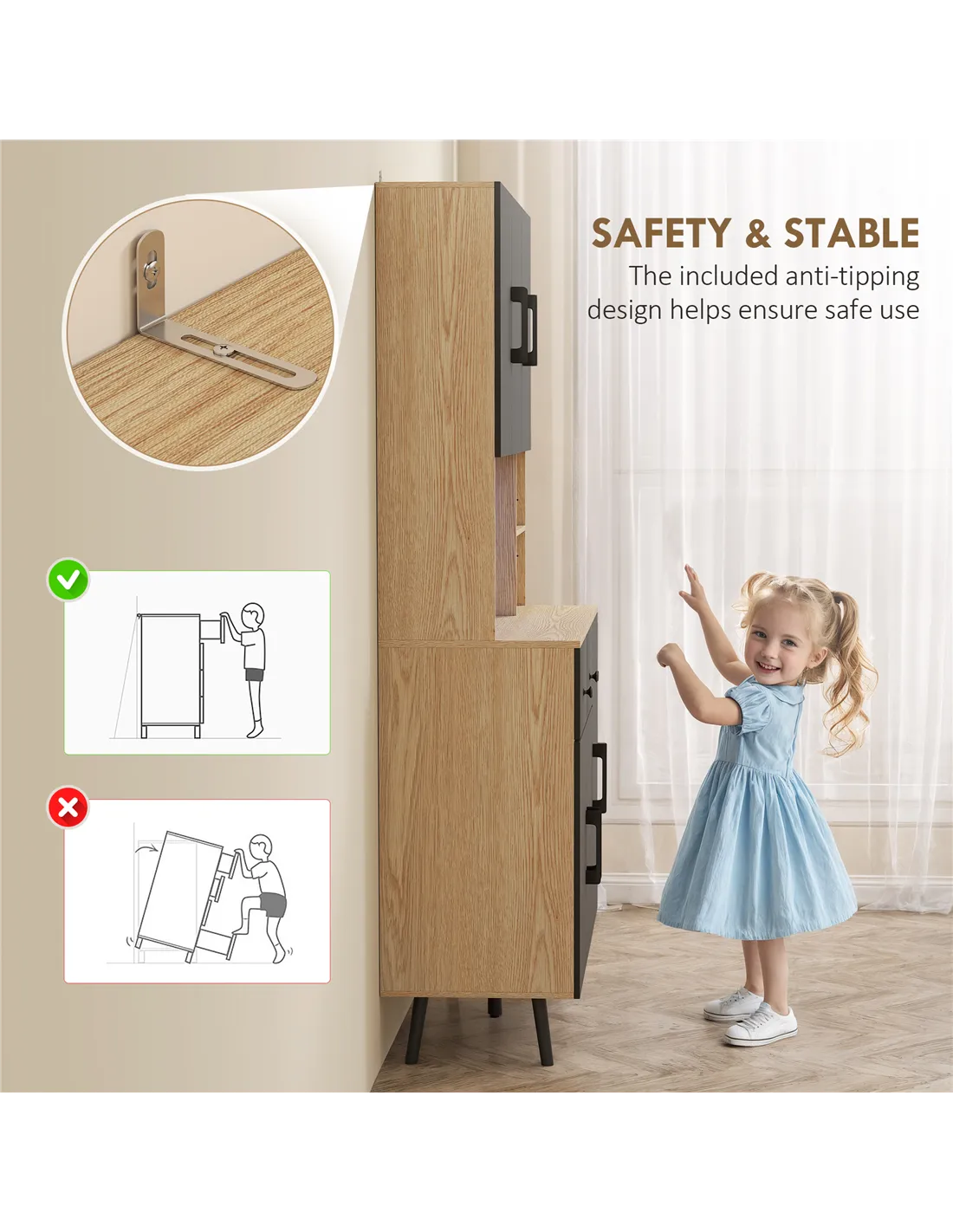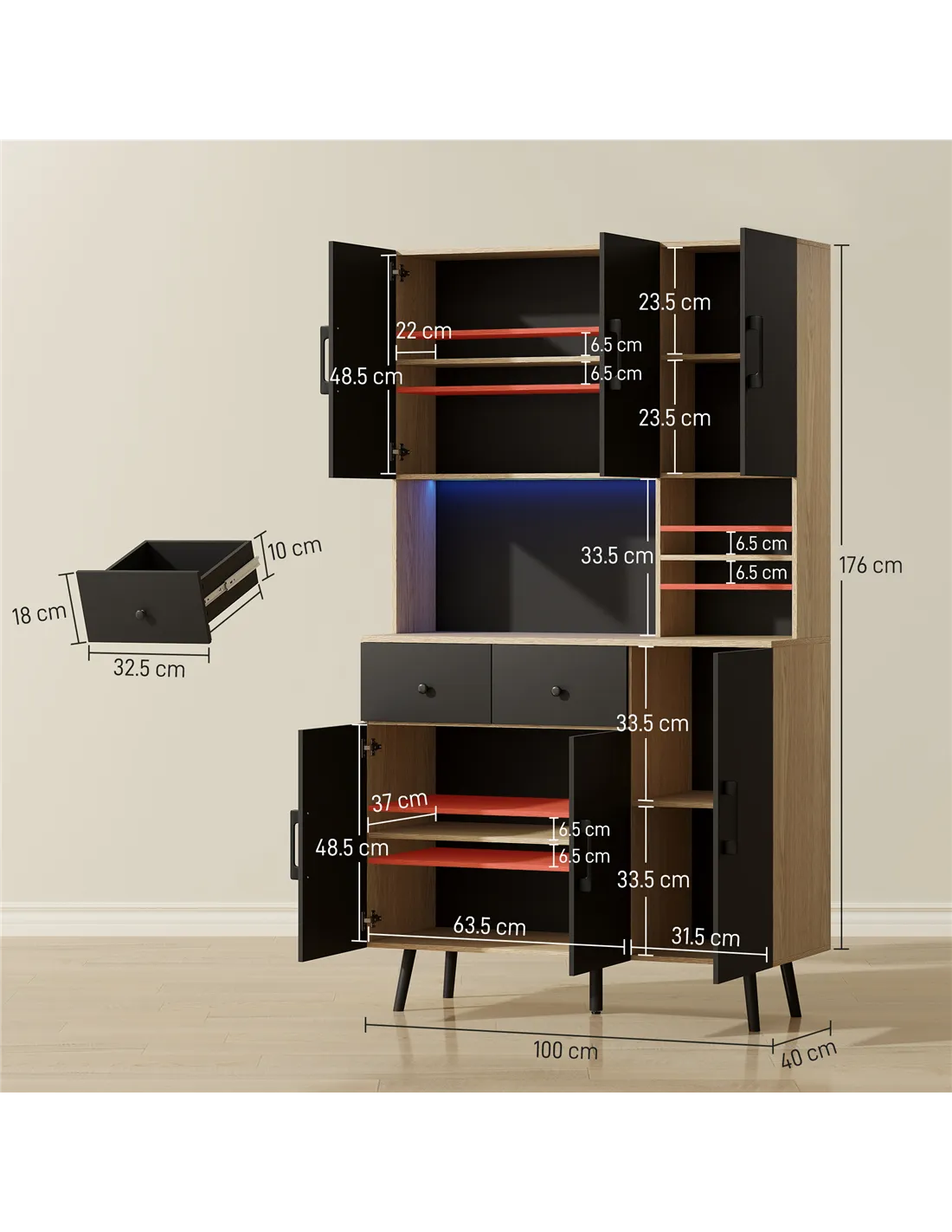 HOMCOM 176 cm Kitchen Cupboard with LED Lights - Oak and Black