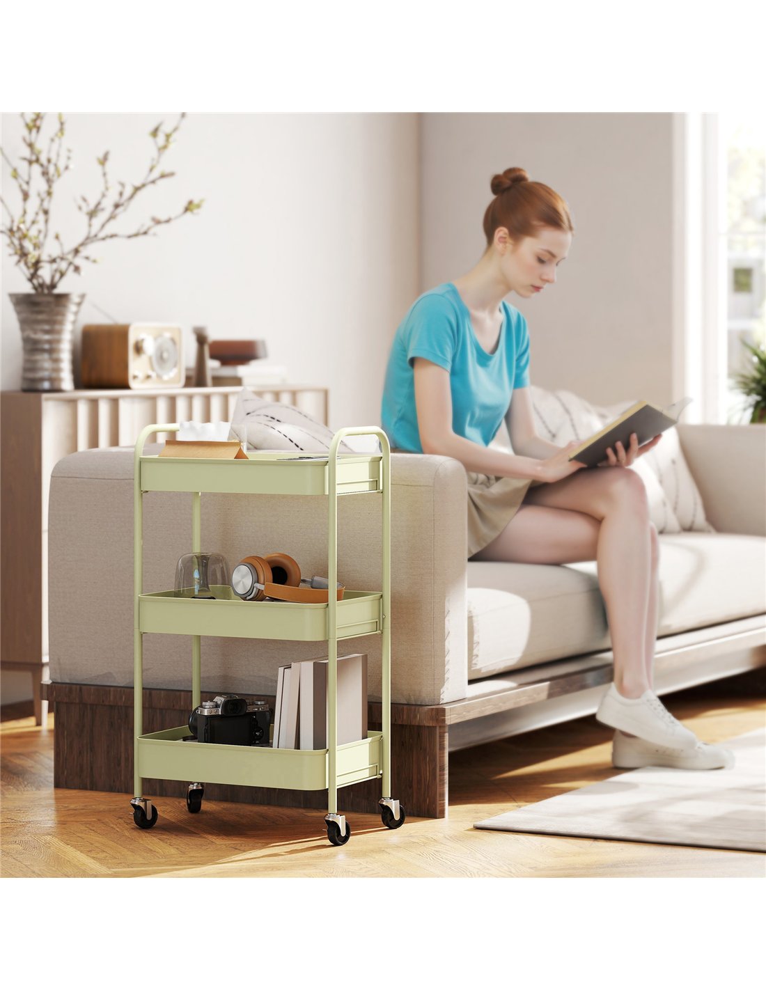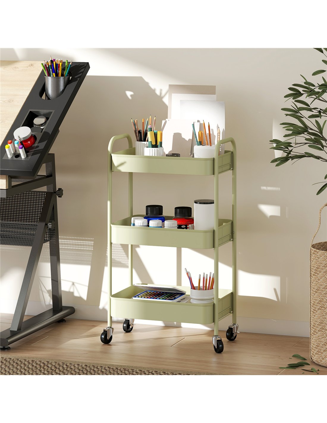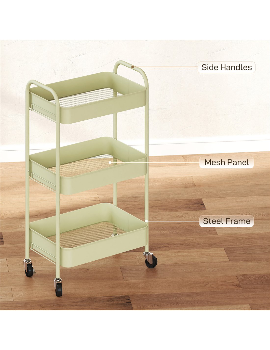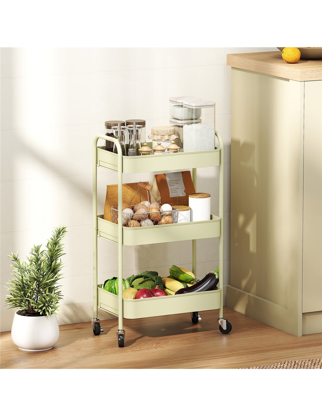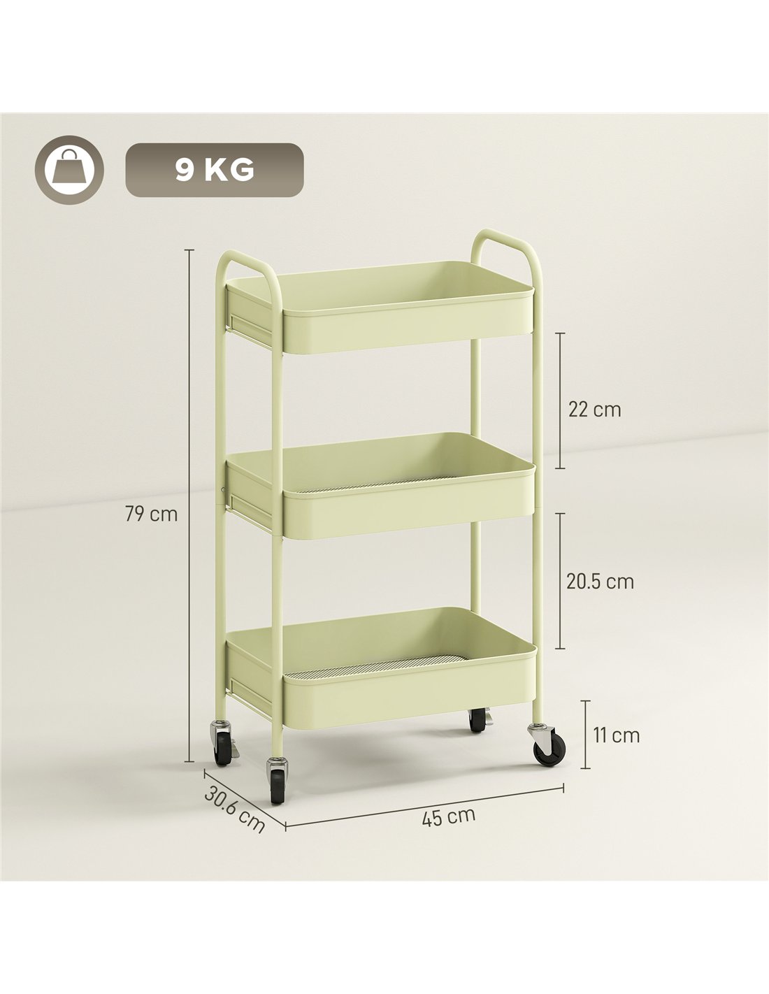 HOMCOM Three-Tier Steel Storage Trolley - Green