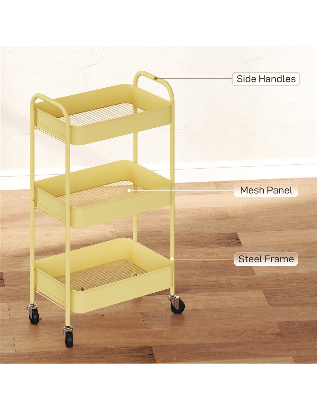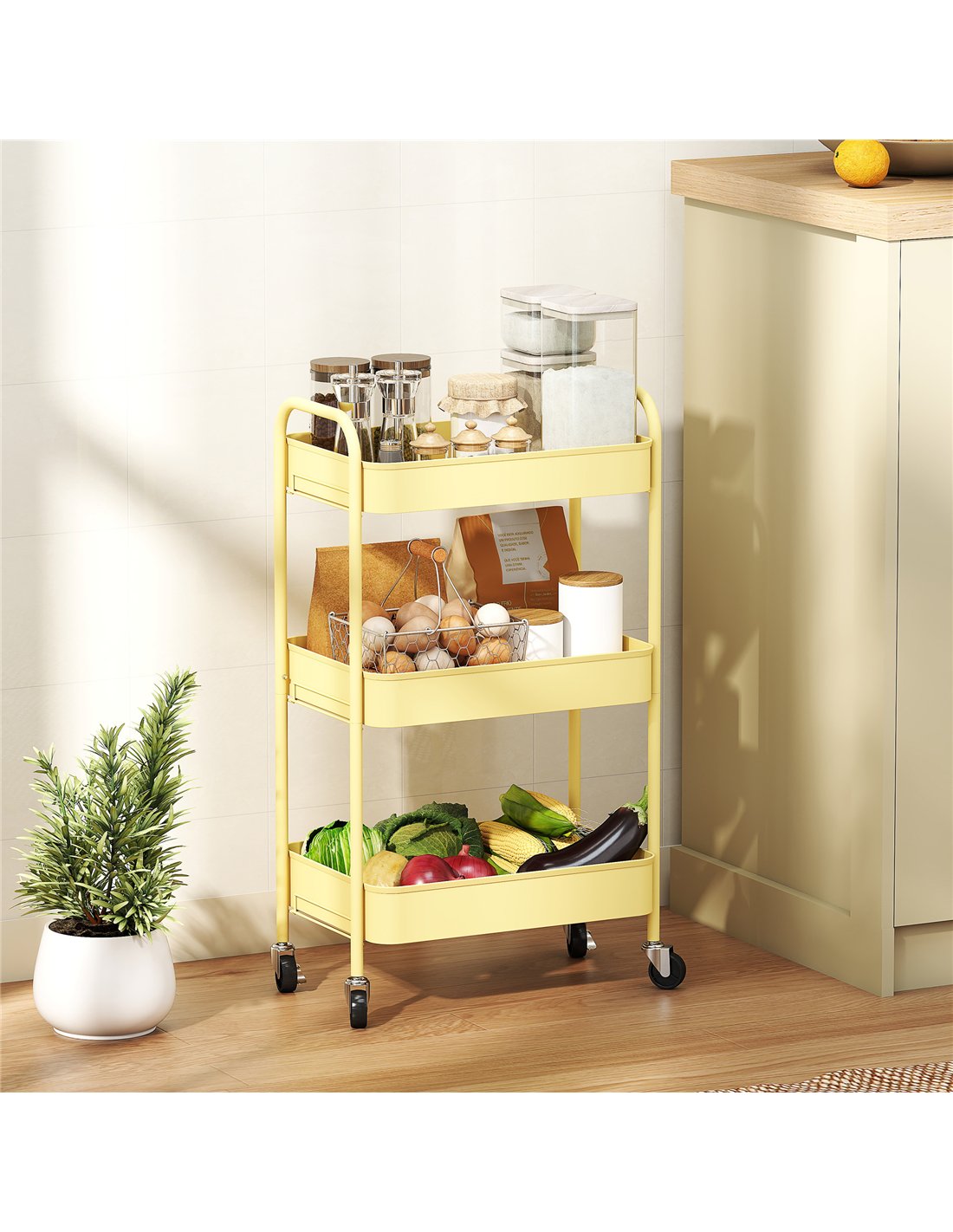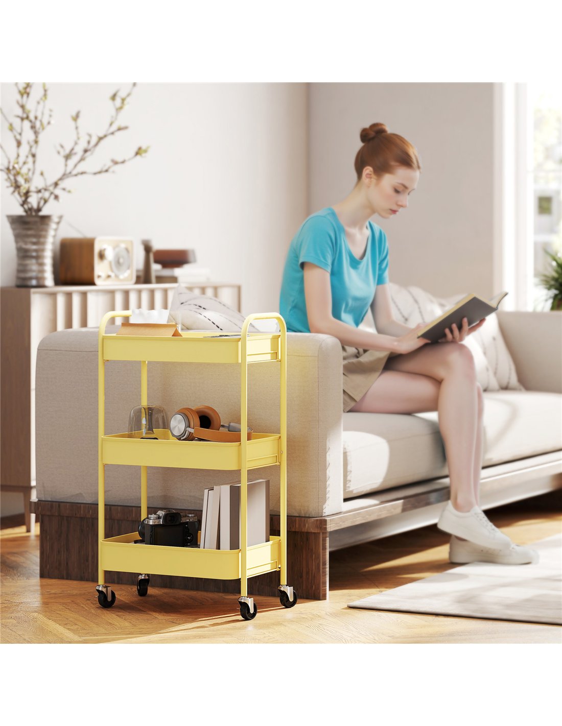 HOMCOM Three-Tier Steel Storage Trolley - Yellow