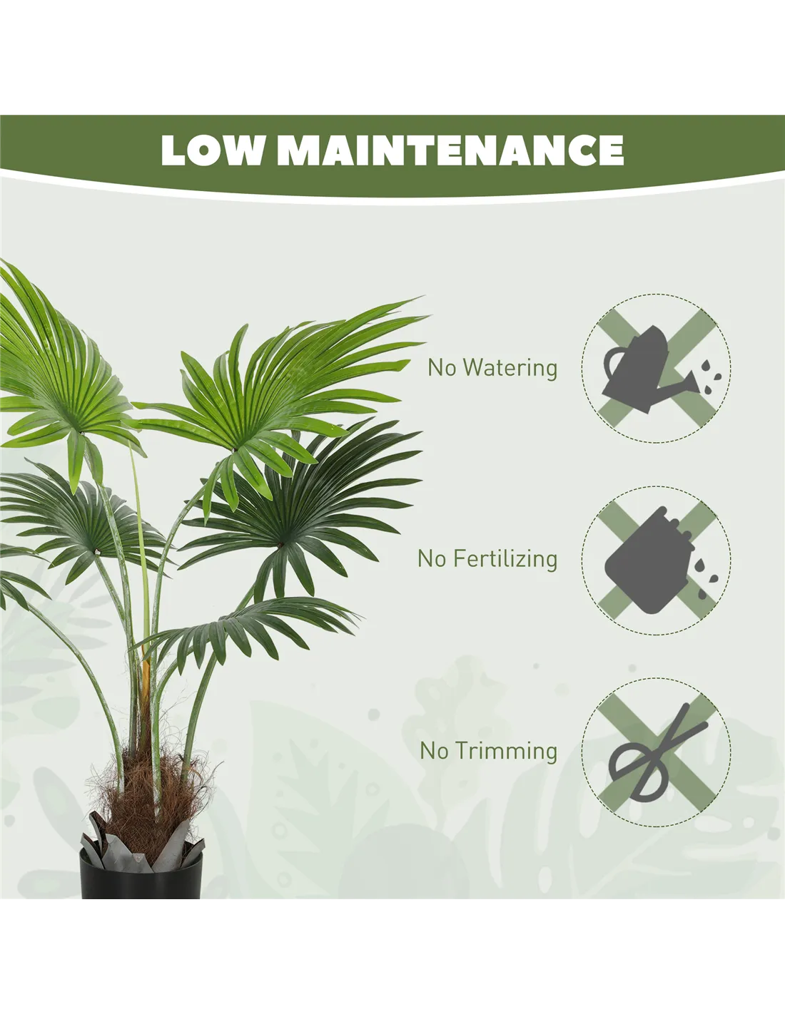 Transform your home into a serene oasis with the HOMCOM artificial palm tree. Imagine the lush, tropical vibe it brings, with rich green leaves and realistic coconut coir. Tired of constant plant care? This faux plant requires only an occasional wipe, suitable for busy lifestyles. Customise its flexible stem to reflect your style, adding charm to any room. Enjoy effortless greenery and personal expression with the HOMCOM artificial plant.