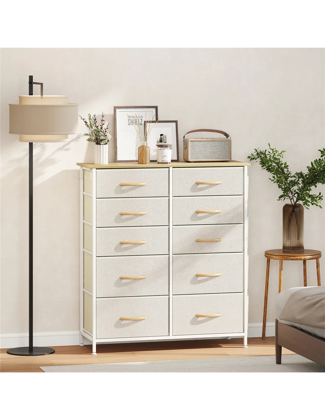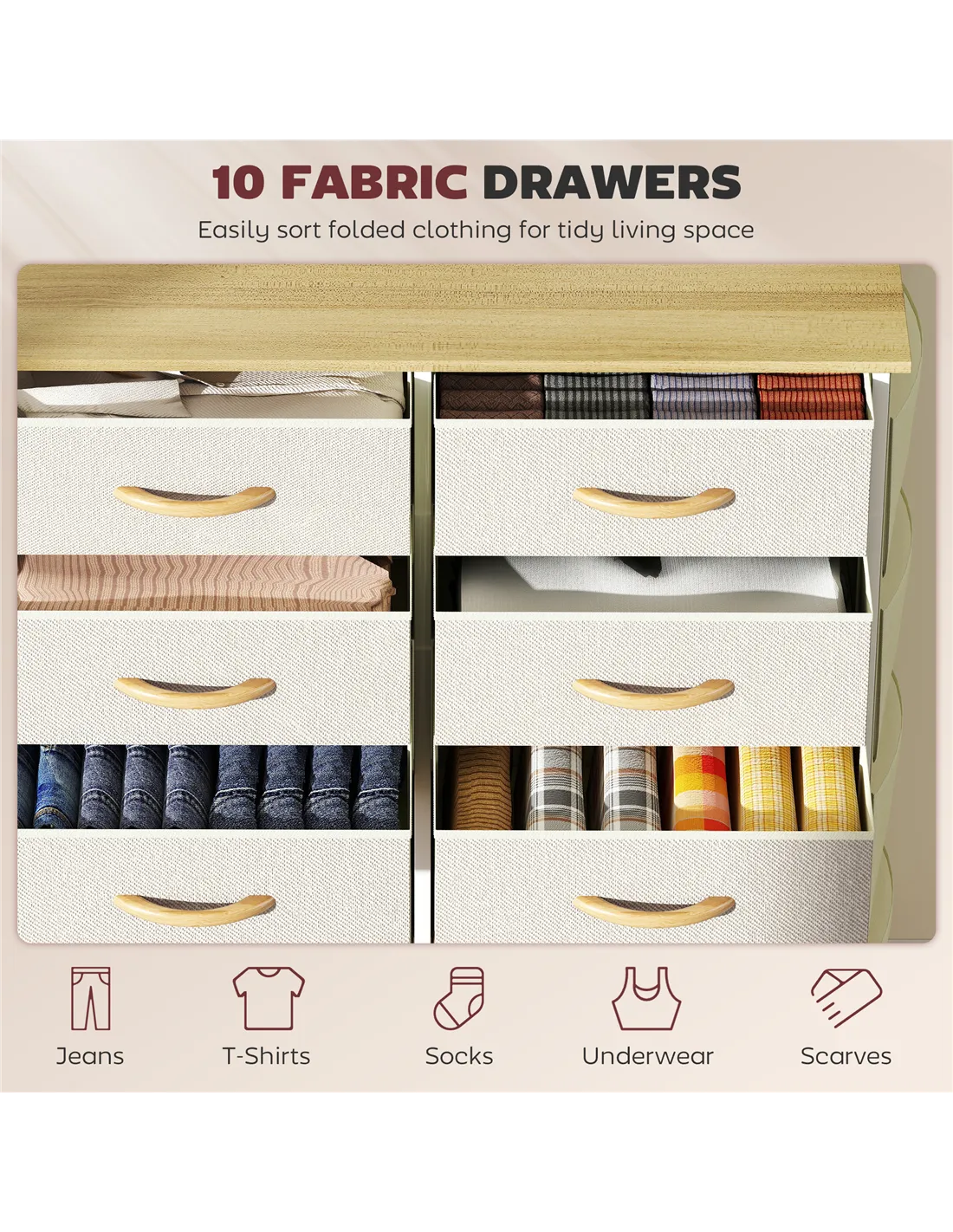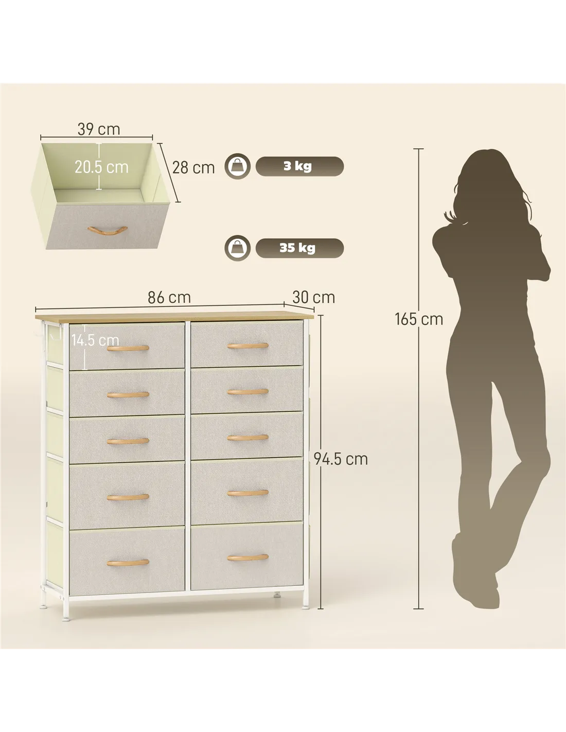 HOMCOM Chest of Ten Fabric Drawers - Beige