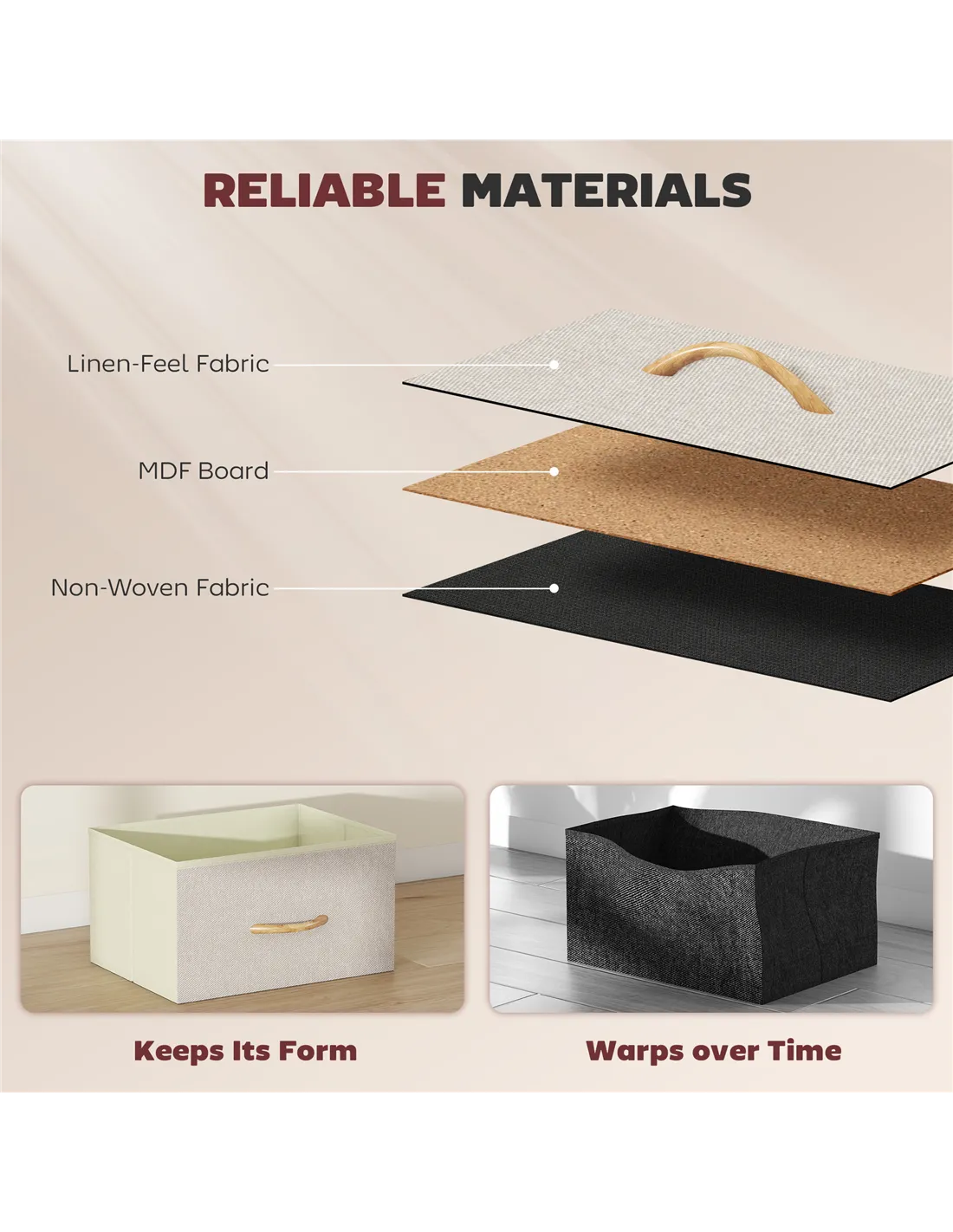 - Foldable drawers collapse flat for compact storage when not in use
