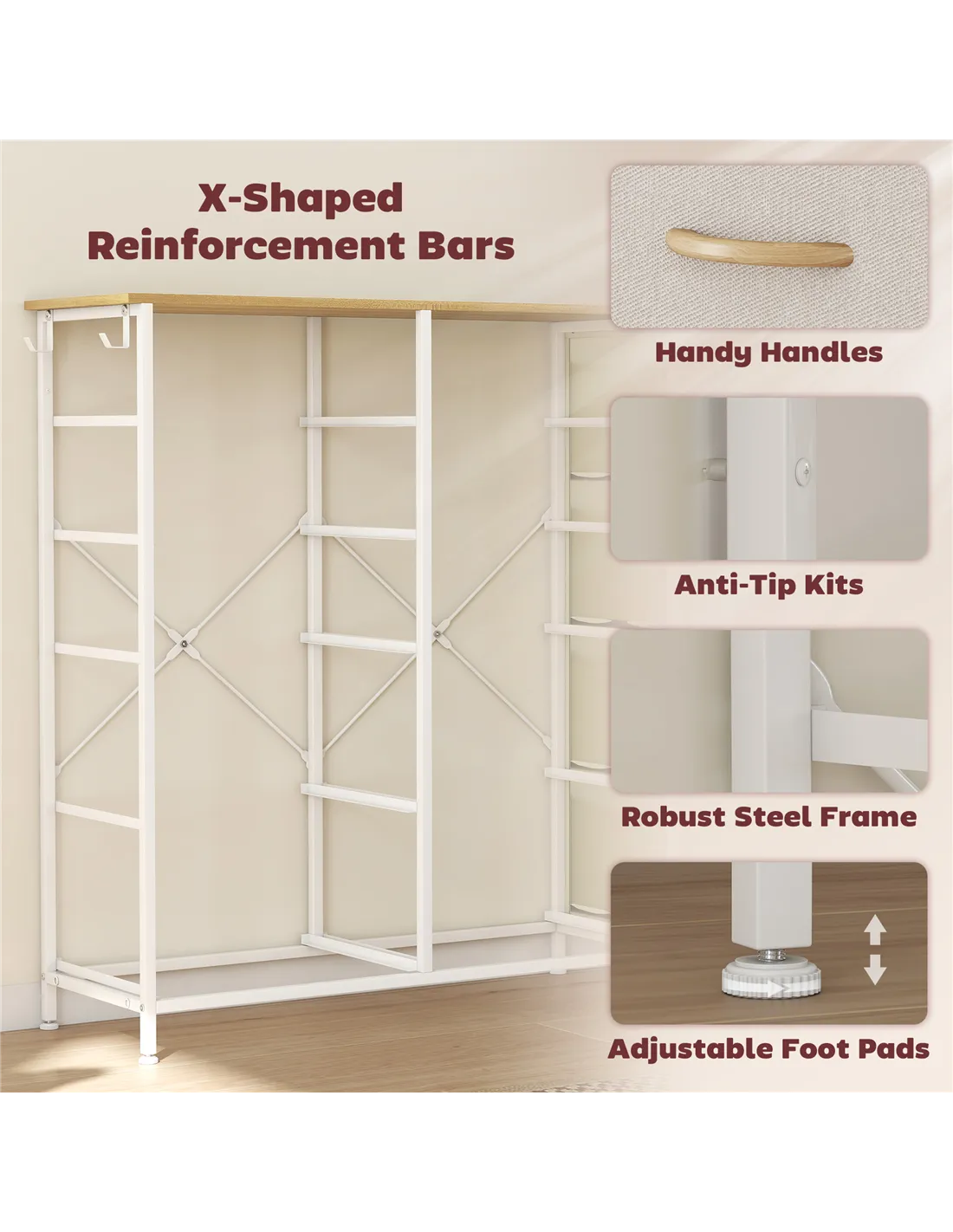 - Anti-tipping kit included to safely secure to a wall