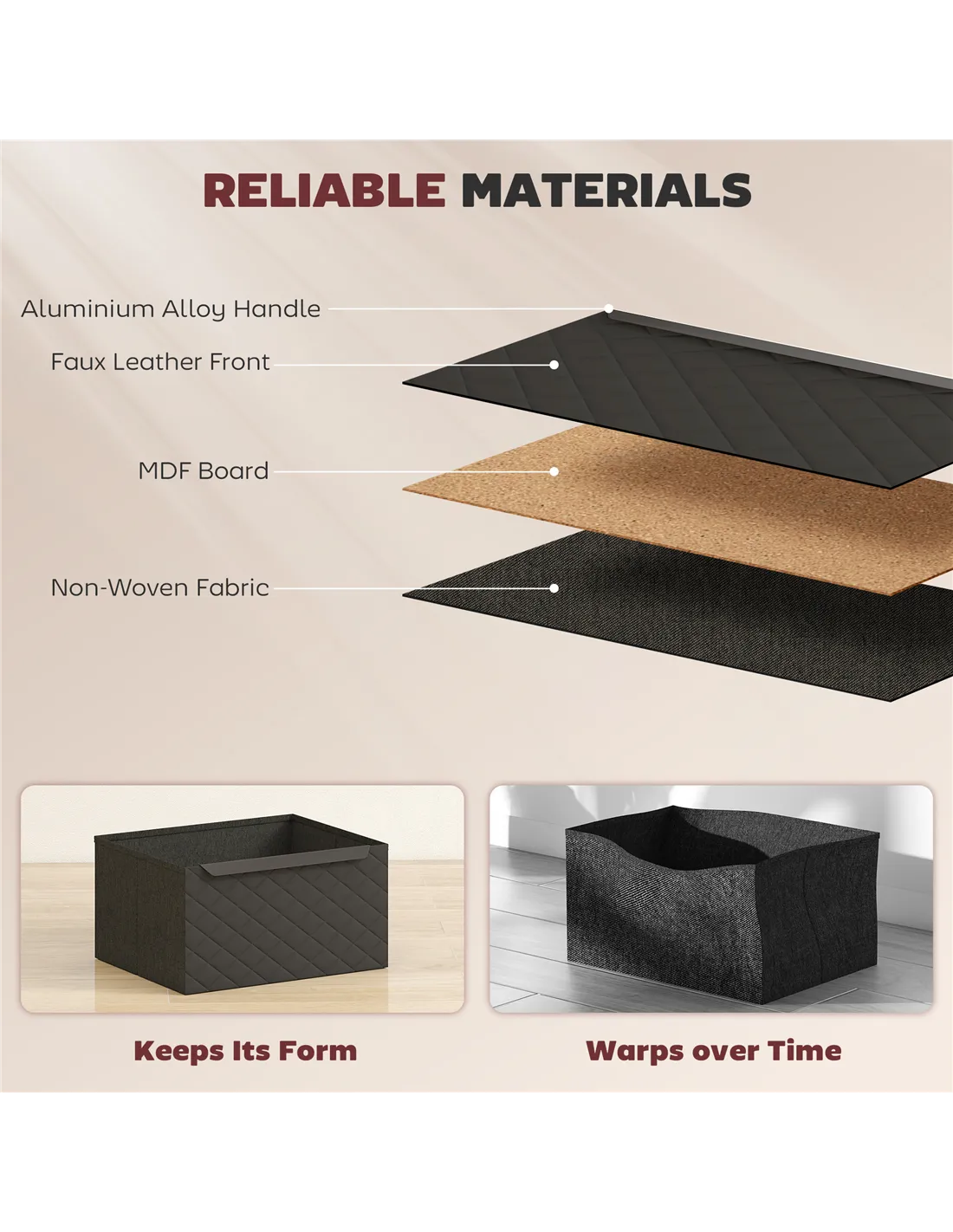 - A: The drawers are constructed from non-woven fabric and feature aluminium alloy handles for opening and closing.