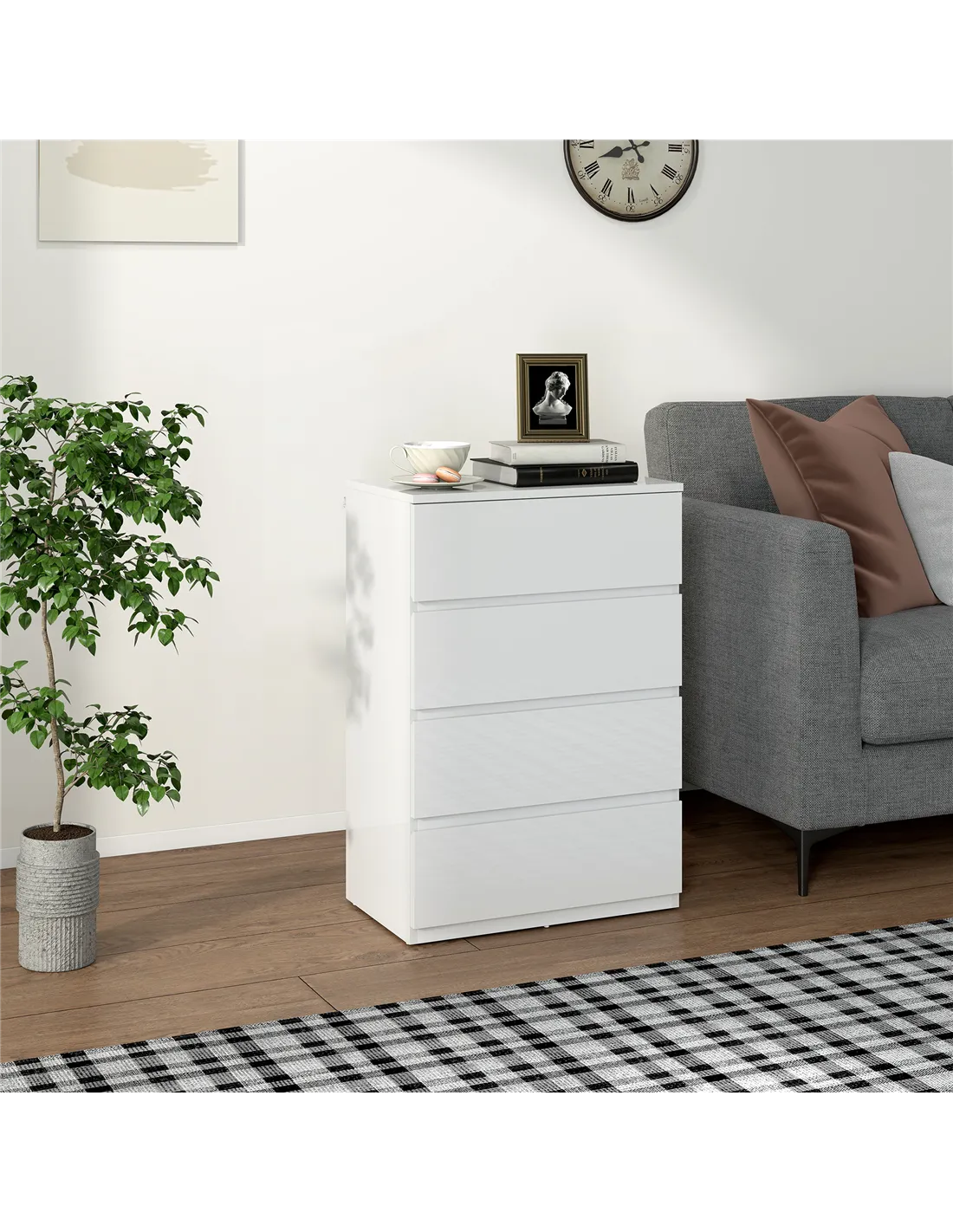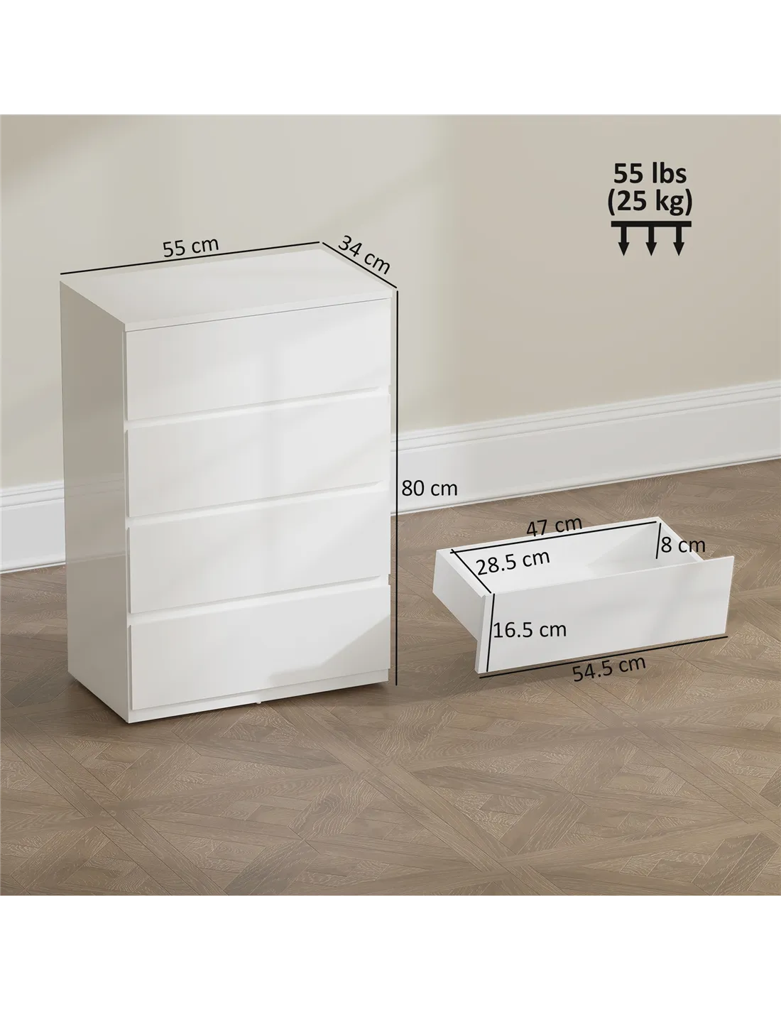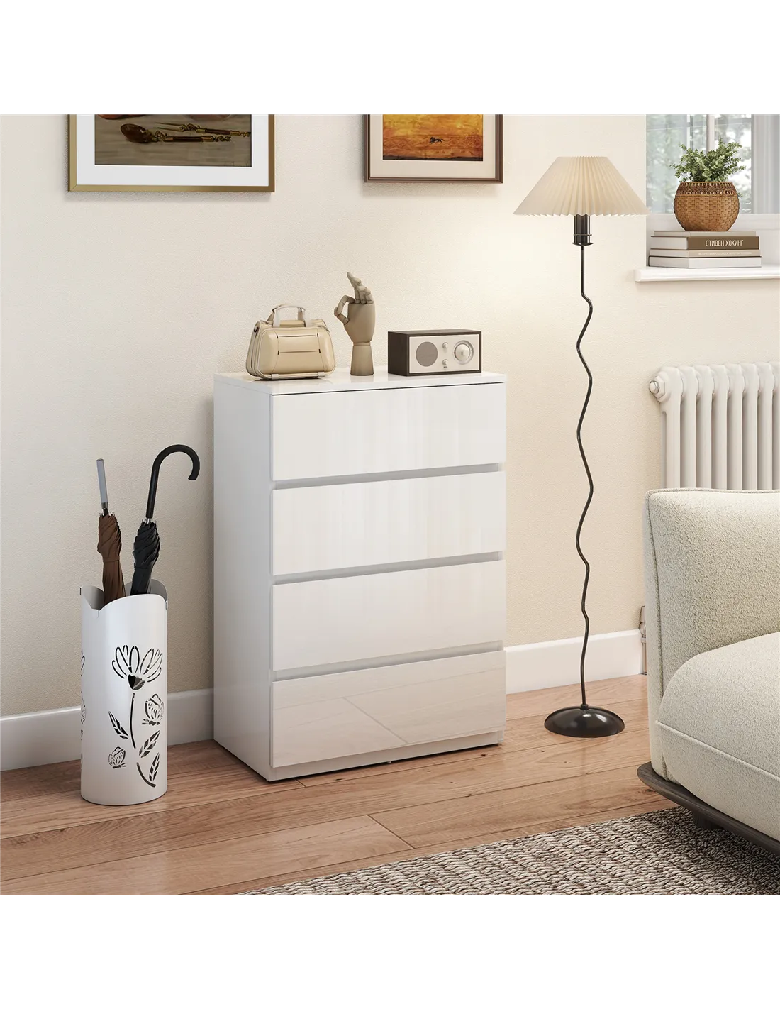HOMCOM High Gloss Chest of Drawers, 4-Drawer Storage Cabinets, Modern Dresser for Bedroom, White