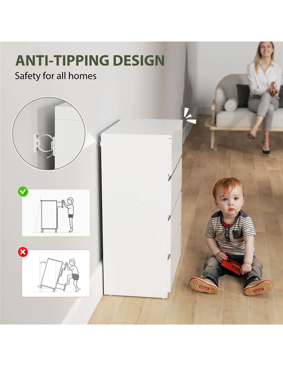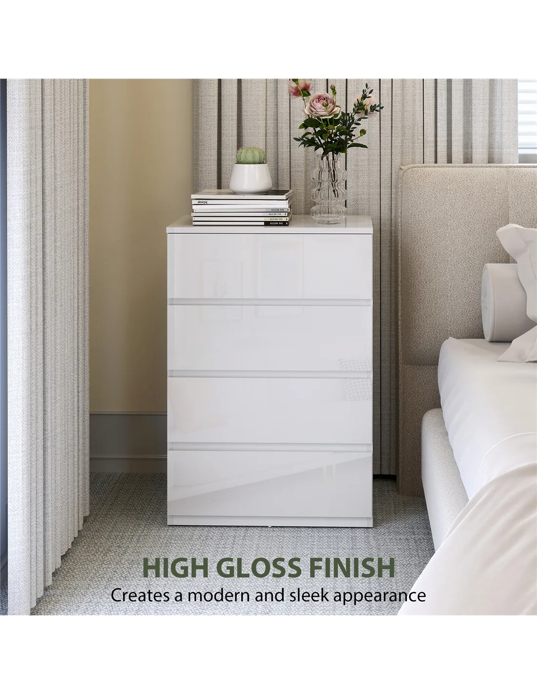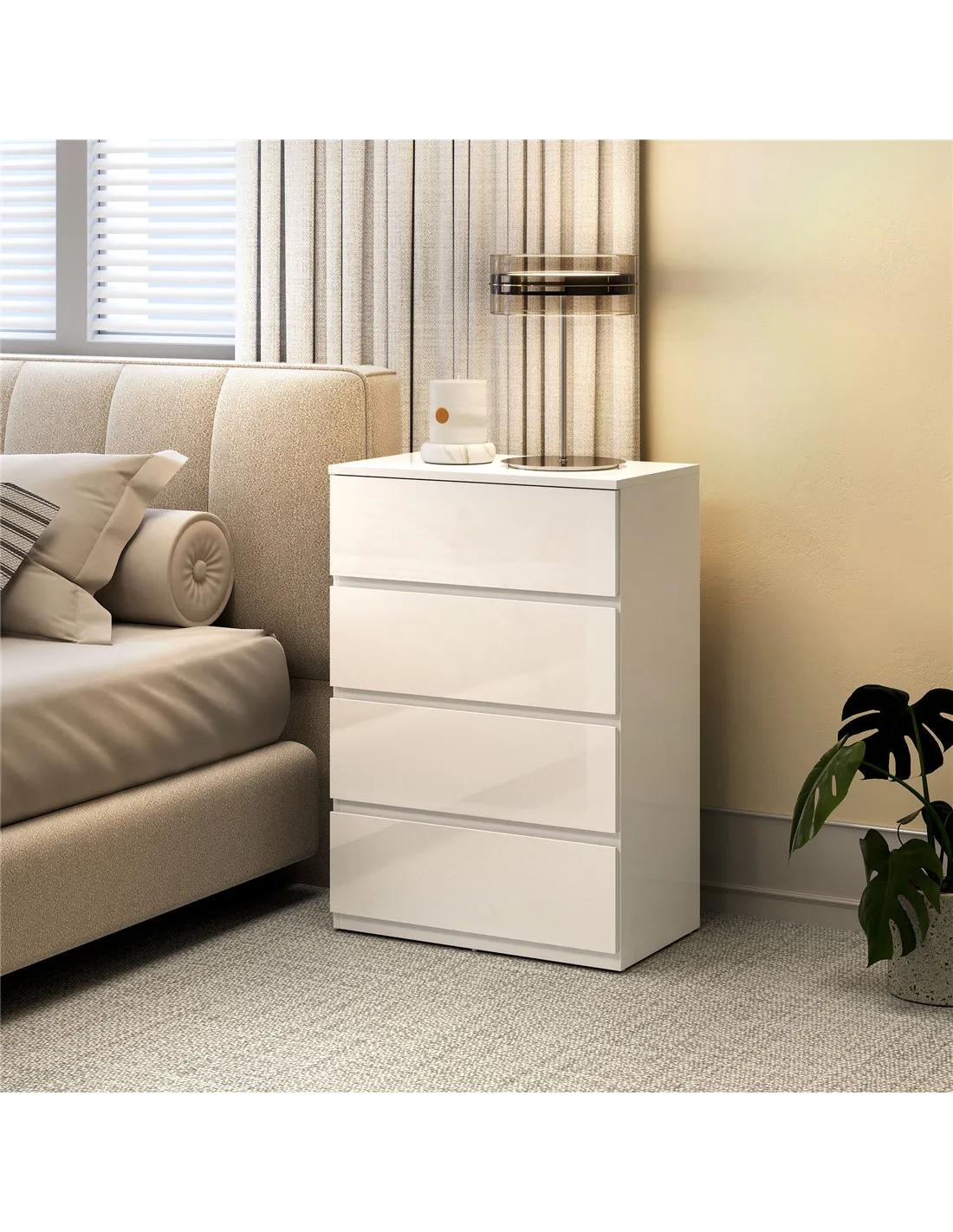 HOMCOM High Gloss Chest of Drawers, 4-Drawer Storage Cabinets, Modern Dresser for Bedroom, White