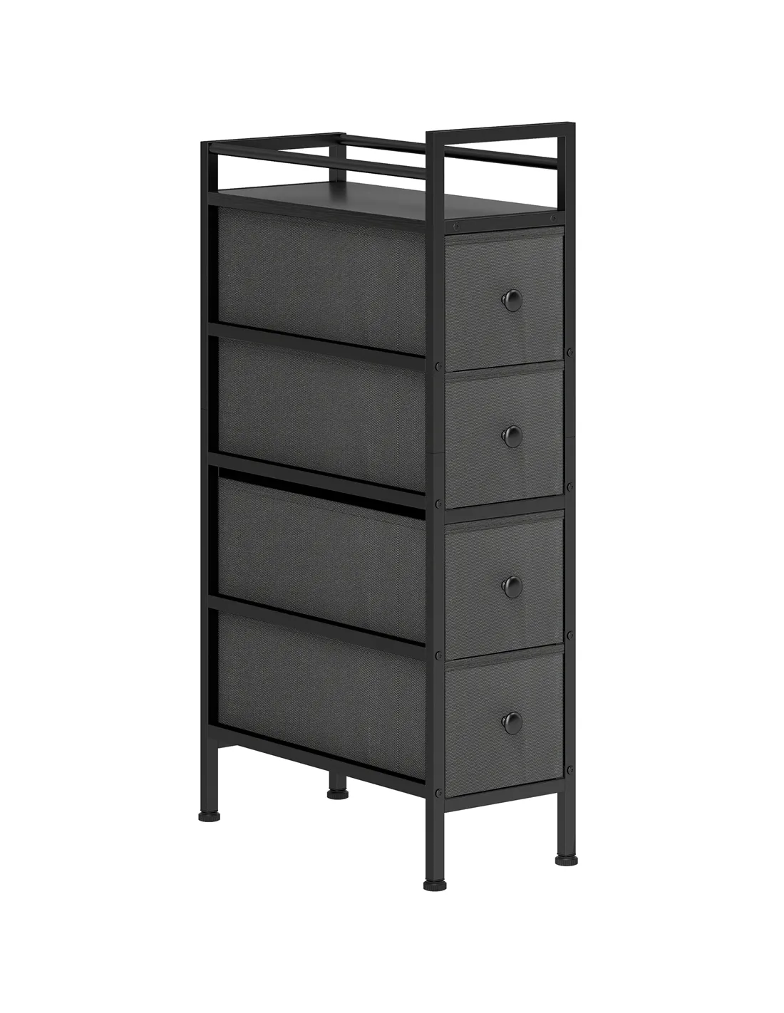 Reclaim unused areas with the HOMCOM 4 Drawer Fabric Dresser Chest of Drawers. This slim storage cabinet provides organised solutions for narrow spaces in your home. Its compact 20 cm profile fits perfectly beside your sofa, bed, or within awkward nooks. Four deep, foldable fabric drawers offer practical storage for small accessories. A robust steel frame ensures stability, while the black finish integrates seamlessly into your bedroom, bathroom, living room, or laundry room. Transform cluttered corners into functional, tidy spaces with this essential storage unit.