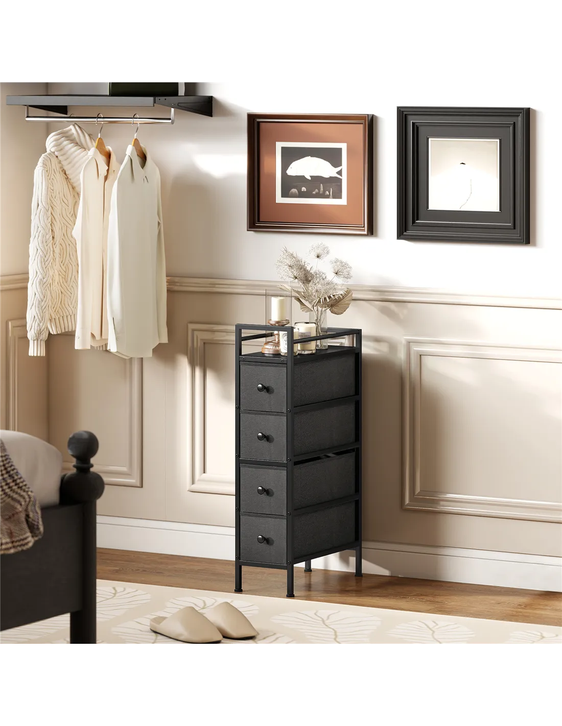 HOMCOM 4 Drawer Fabric Dresser Chest of Drawers, Slim Storage Cabinet with Steel Frame for Small Spaces, Bedroom, Black