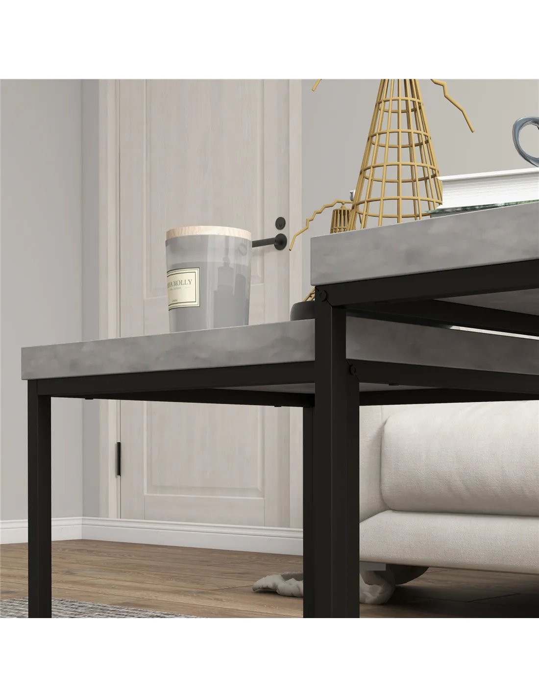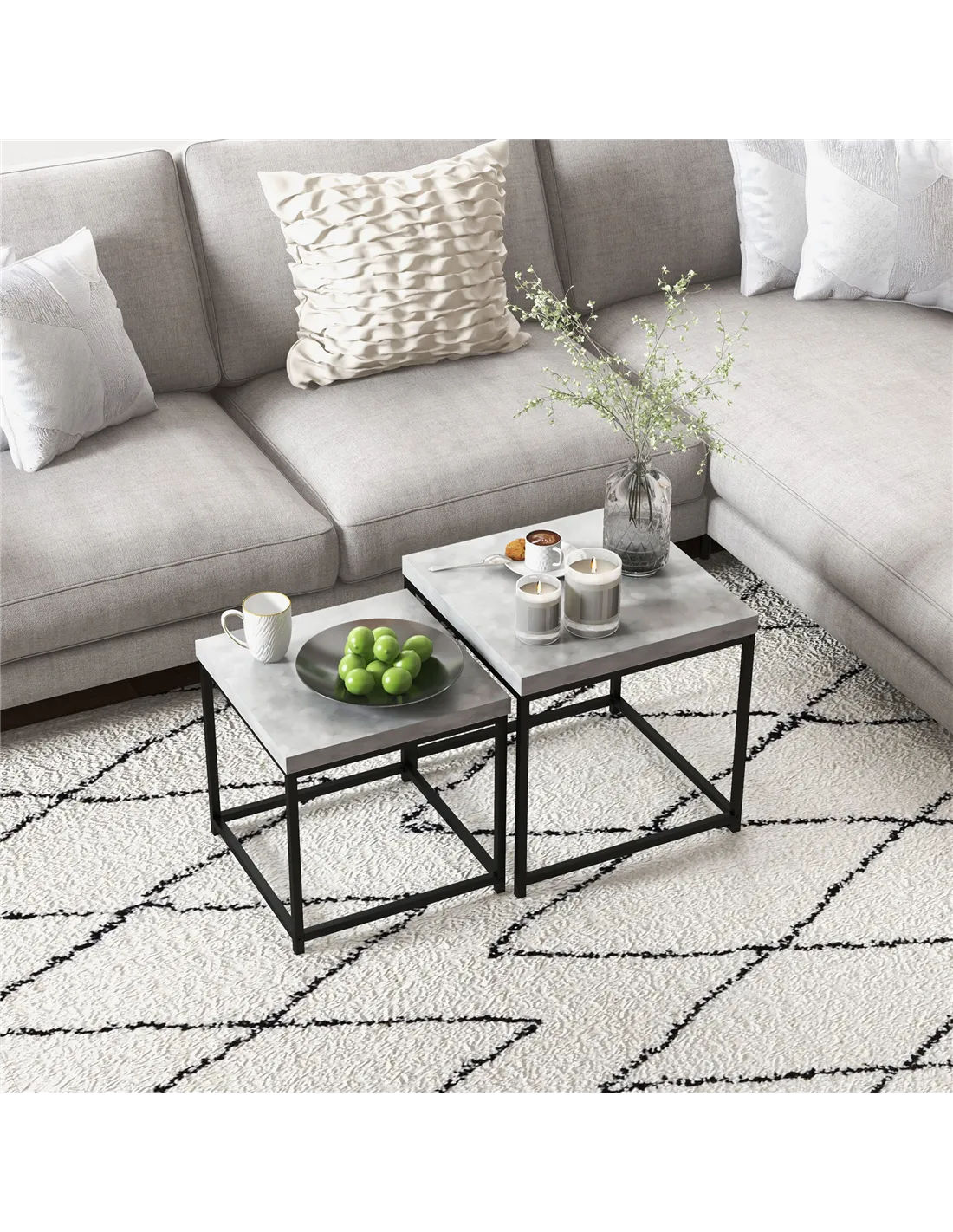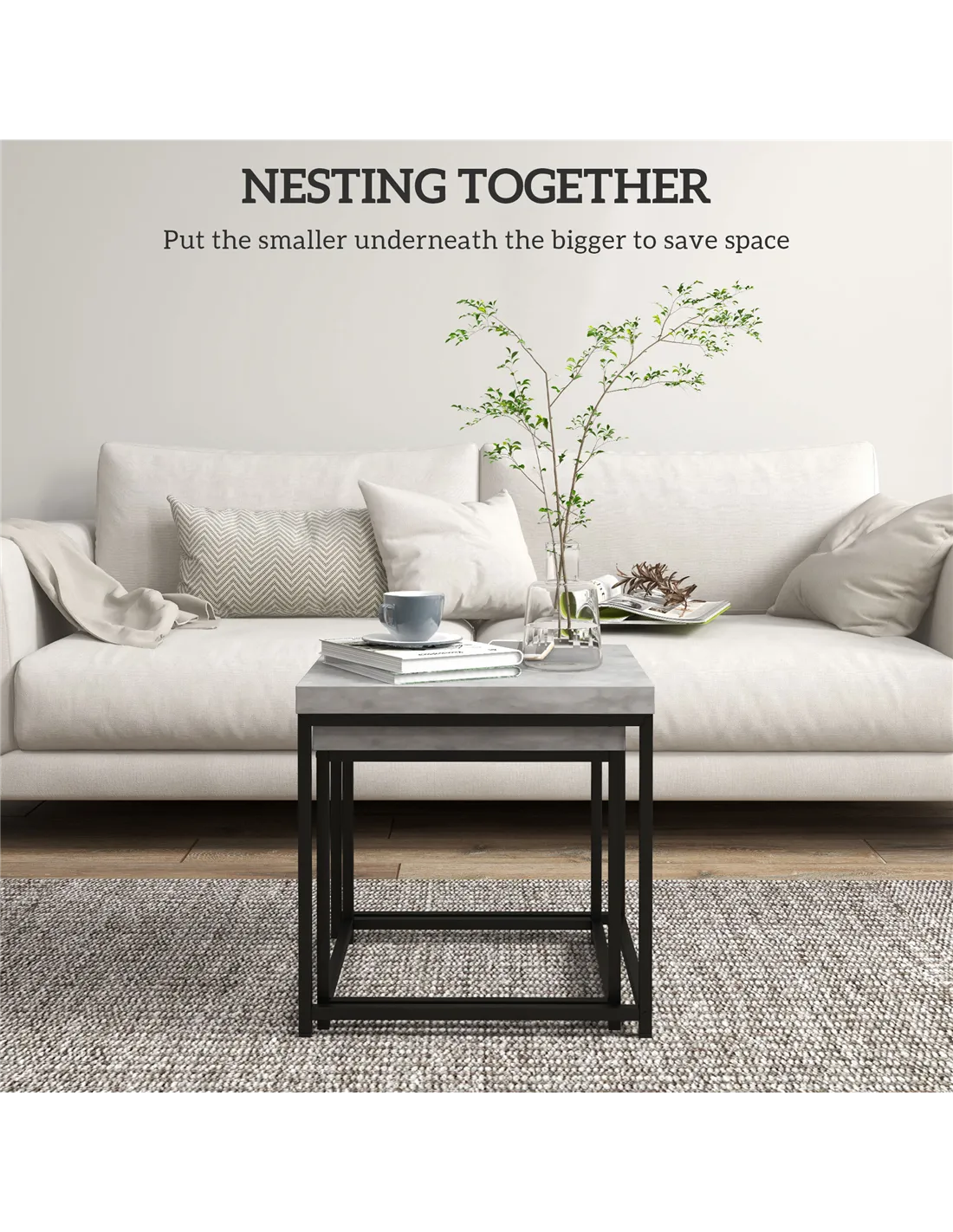 - Stack together for saving space or use it independently, smaller table fits underneath the larger table
